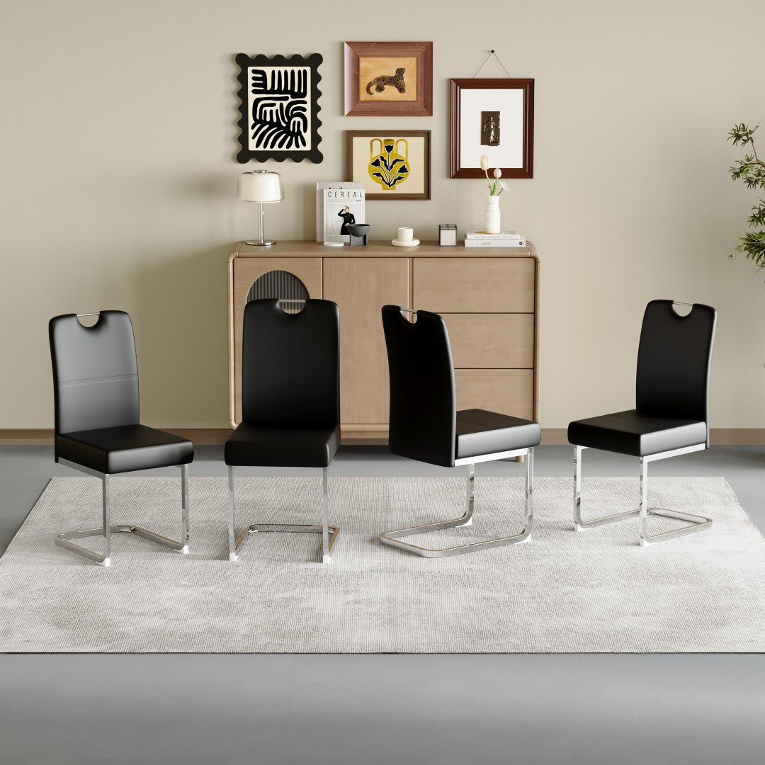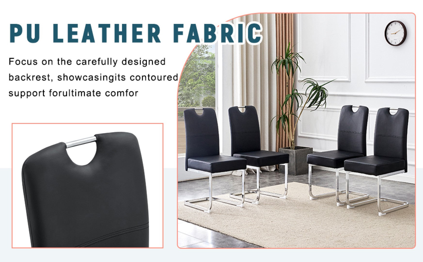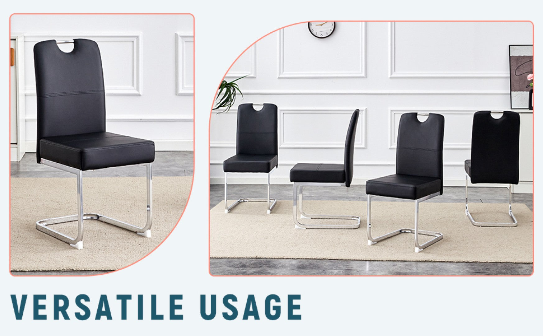 Enjoy comfortable, stylish seating that blends modern design with durable construction. This set of four black dining chairs features thickened cushioning with built-in spring support and an ergonomic silhouette, delivering lasting comfort for dining, work, or casual seating while maintaining an elegant, easy-to-clean finish.