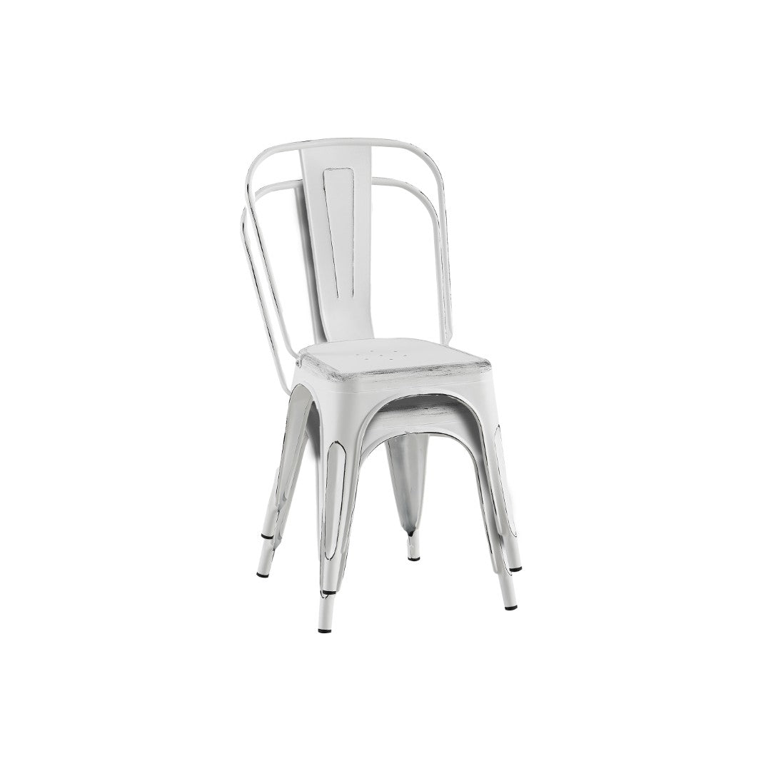 - Set Includes: Four (4) sanded matte white industrial metal dining chairs