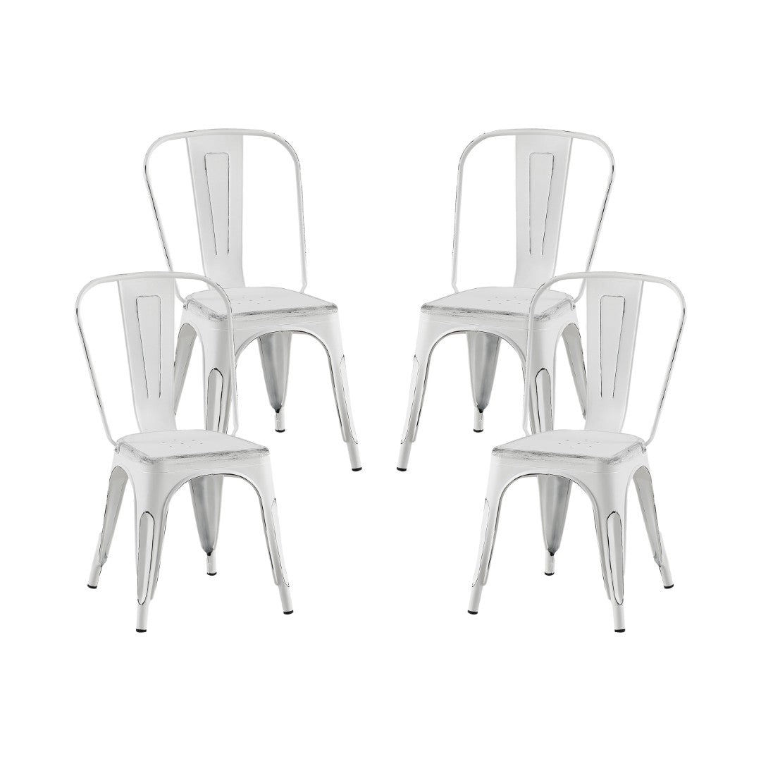 - What's Included: Set of 4 Modern Sanded Matte White Metal Dining Room Kitchen Bar Chairs.