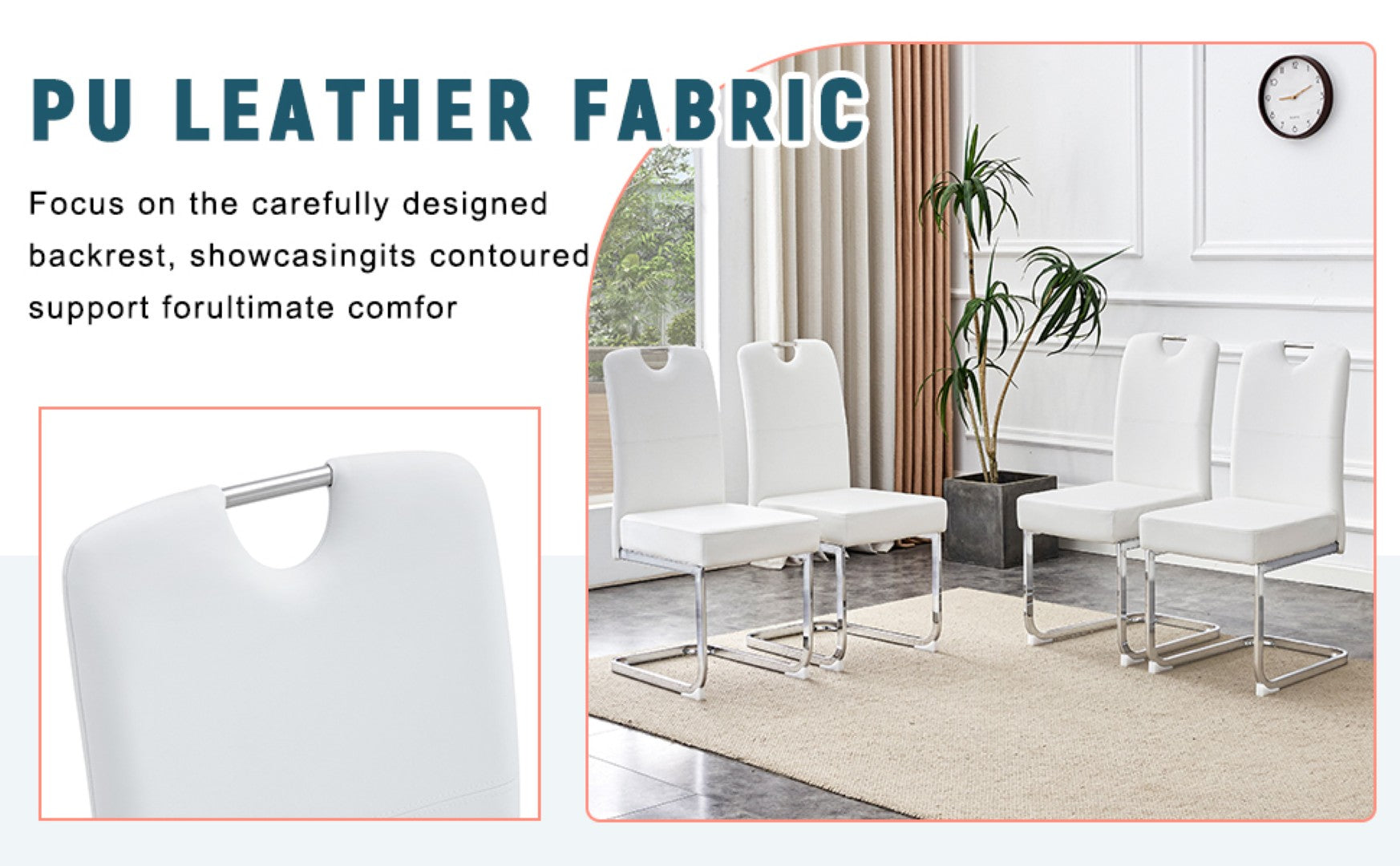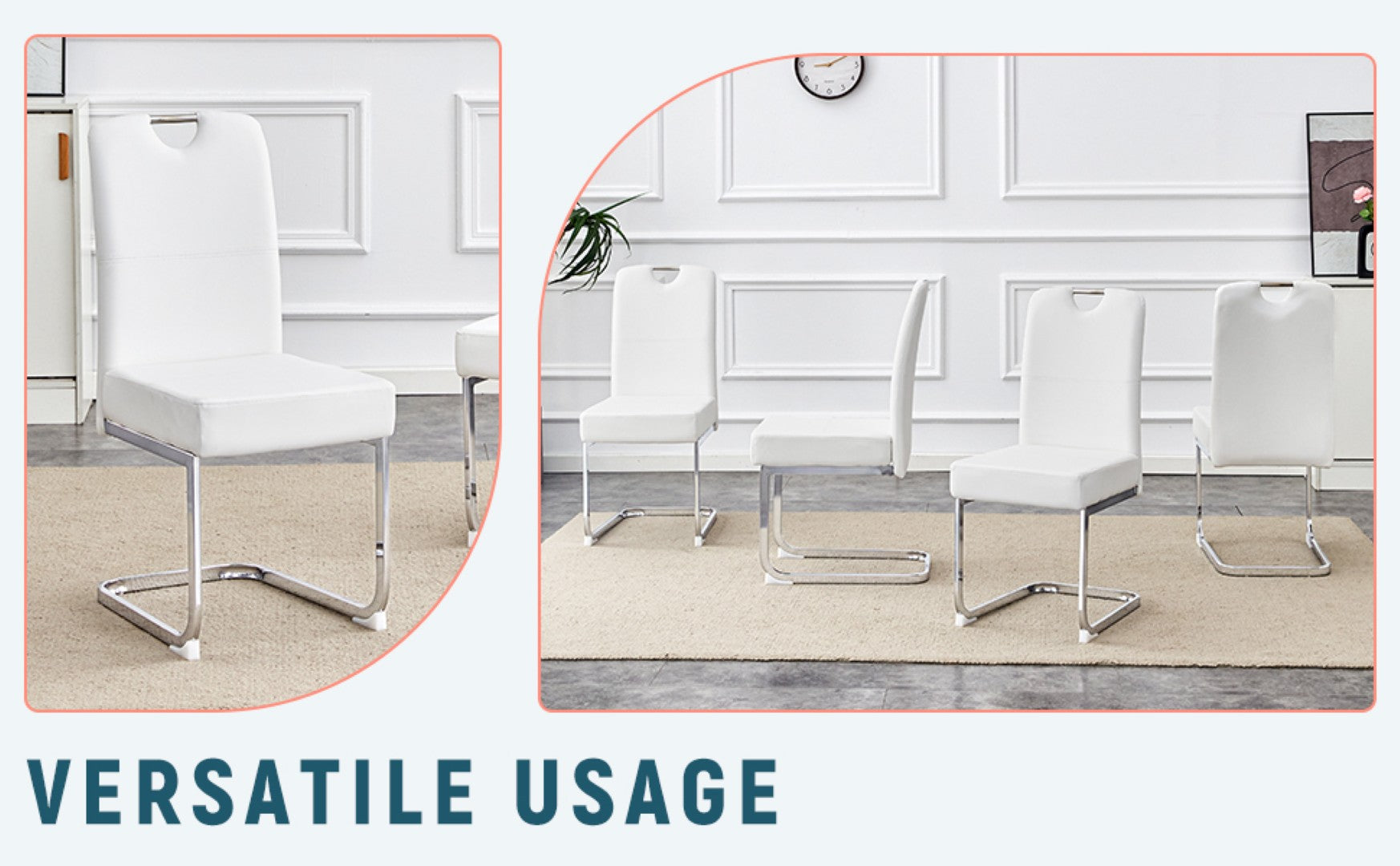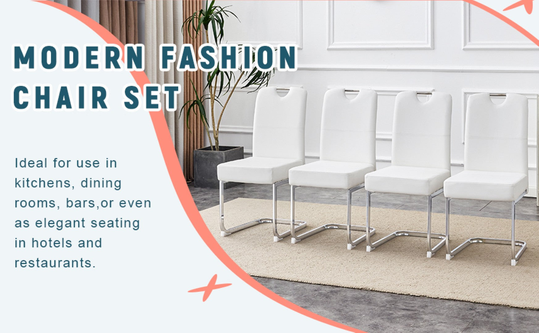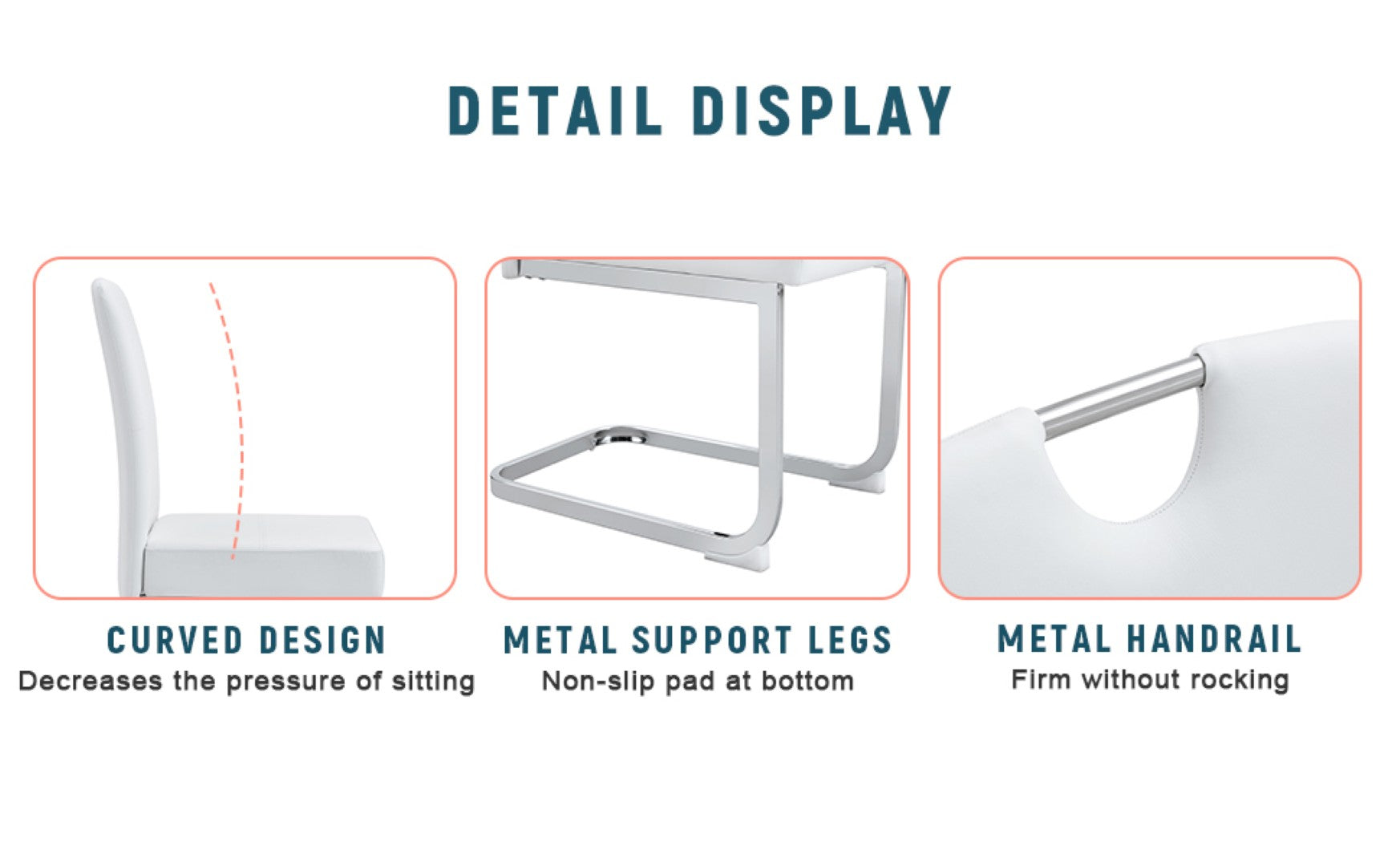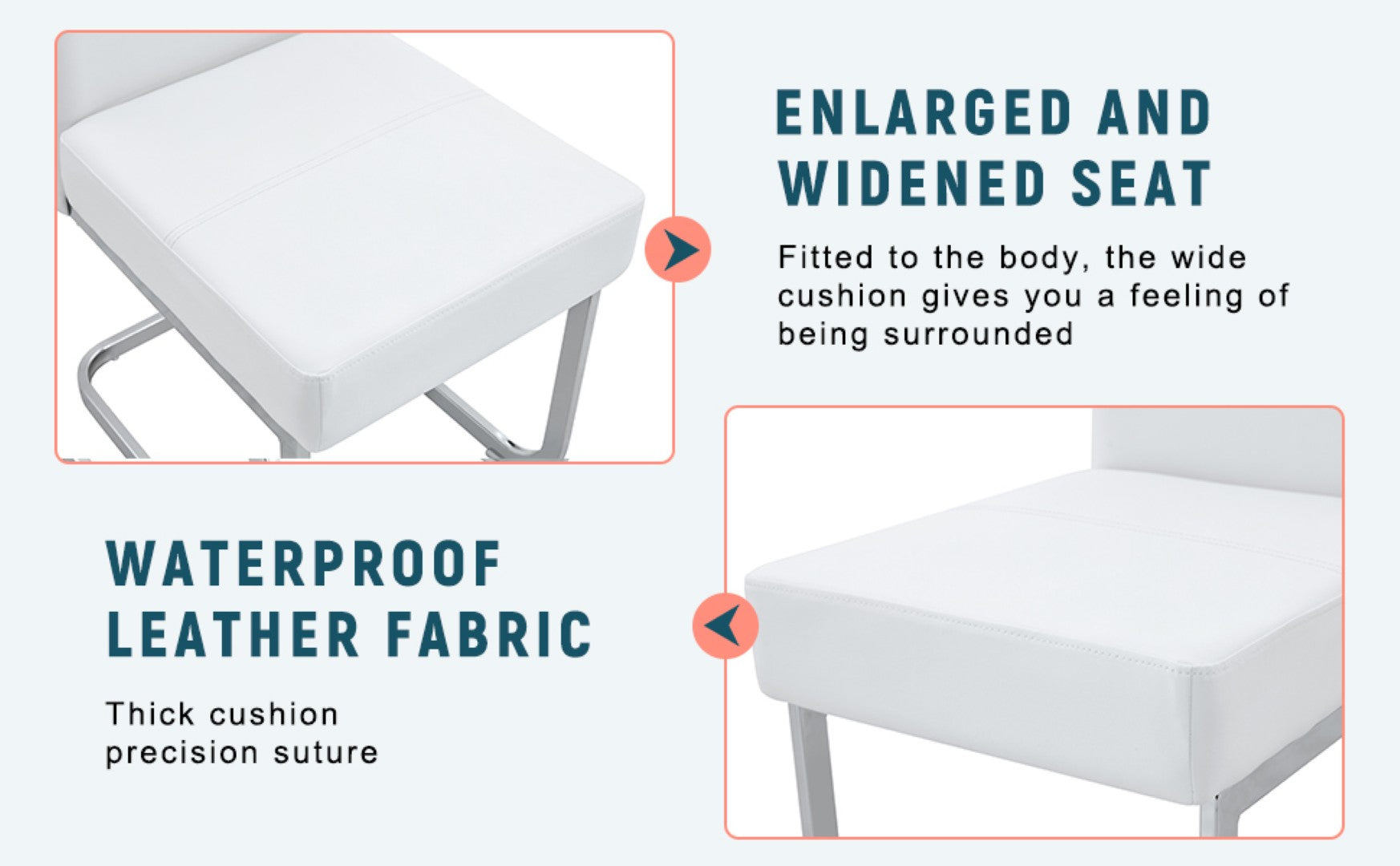 Experience refined comfort and modern style with this set of four white dining chairs designed for everyday use and extended sitting. Each chair blends an ergonomic silhouette with thickened cushioning and durable construction to deliver supportive seating for dining, home offices, or commercial spaces.