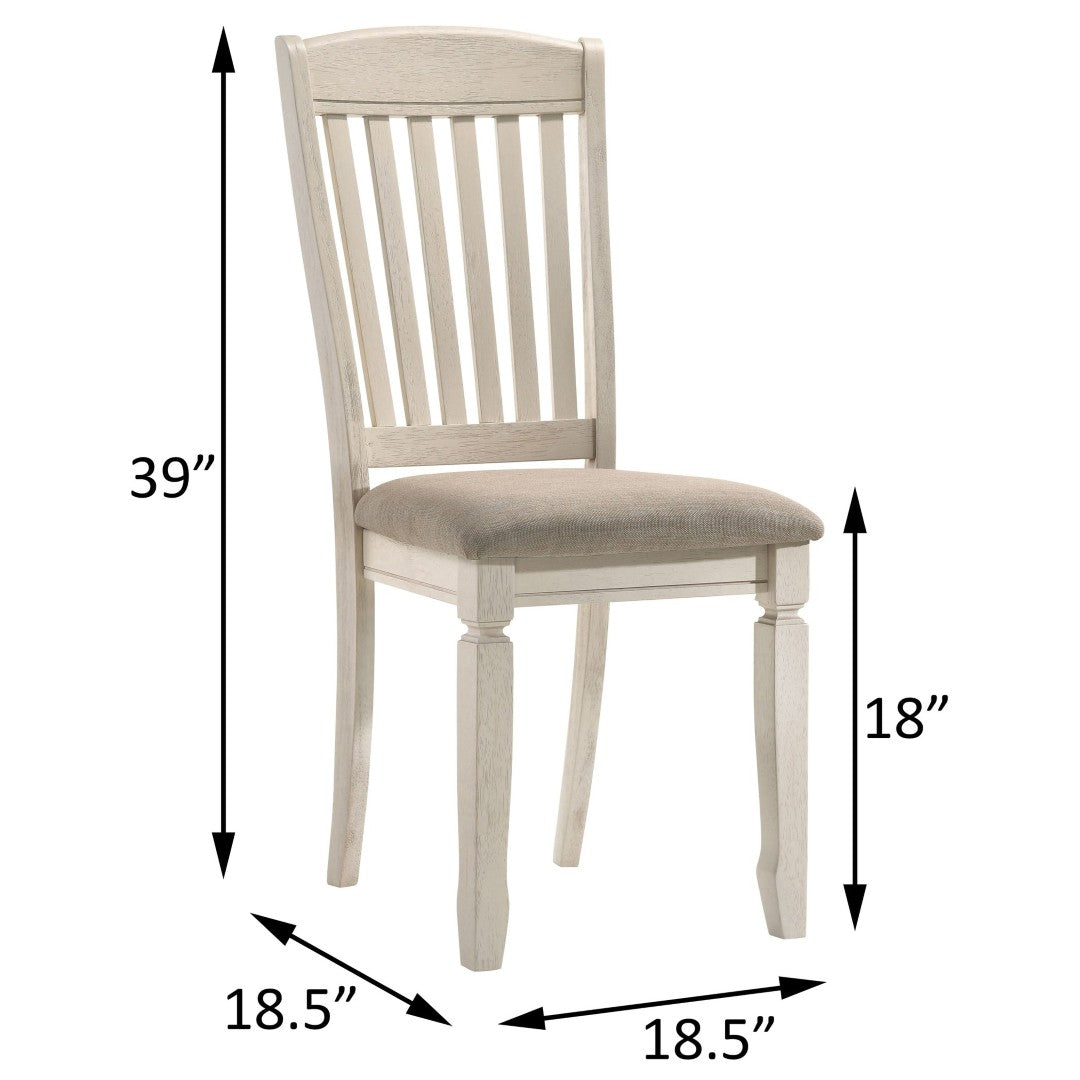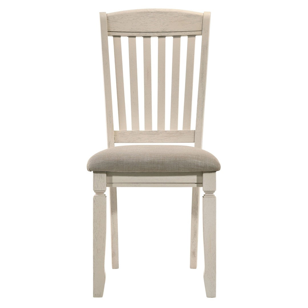 Invite warmth and rustic charm into your dining or living area with this set of two tan-upholstered side chairs. The combination of a slatted wooden back and cream-finished legs creates a balanced, airy look while the padded seats deliver everyday comfort — ideal for relaxed dinners, casual conversations, or extra seating when guests arrive.