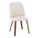 - The elegant Mid-Century Modern appeal of the Toriano Dining Chair by LumiSource will look spectacular in any dining or living area. Featuring an upholstered seat and backrest with solid wood legs, the Toriano provides comfort and style. Available in various colors, choose the one you like best!