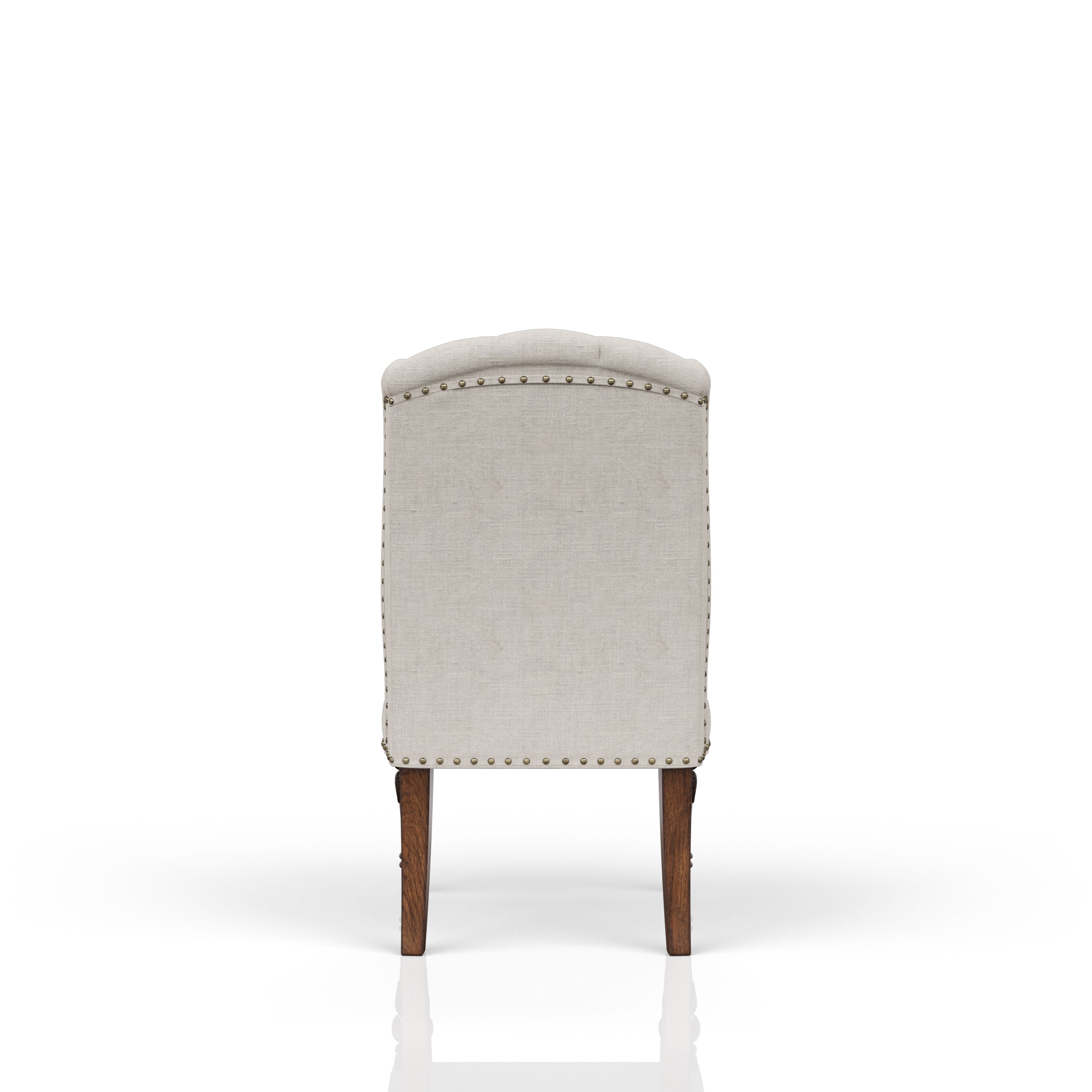 Elevate your dining or seating area with this refined upholstered wing host chair. Designed with traditional charm and modern comfort in mind, it pairs graceful wingback styling with durable construction and a soft, light gray upholstery for an inviting, timeless look suitable for dining rooms, entryways, or accent seating.