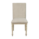 Elevate your dining area with this elegant set of two upholstered dining chairs that blend farmhouse charm and modern simplicity. Built for comfort and everyday use, each chair features a cushioned seat, supportive backrest, and sturdy solid wood legs with a reclaimed finish that adds warmth and character to any dining space. Quick assembly with included tools makes setup easy.