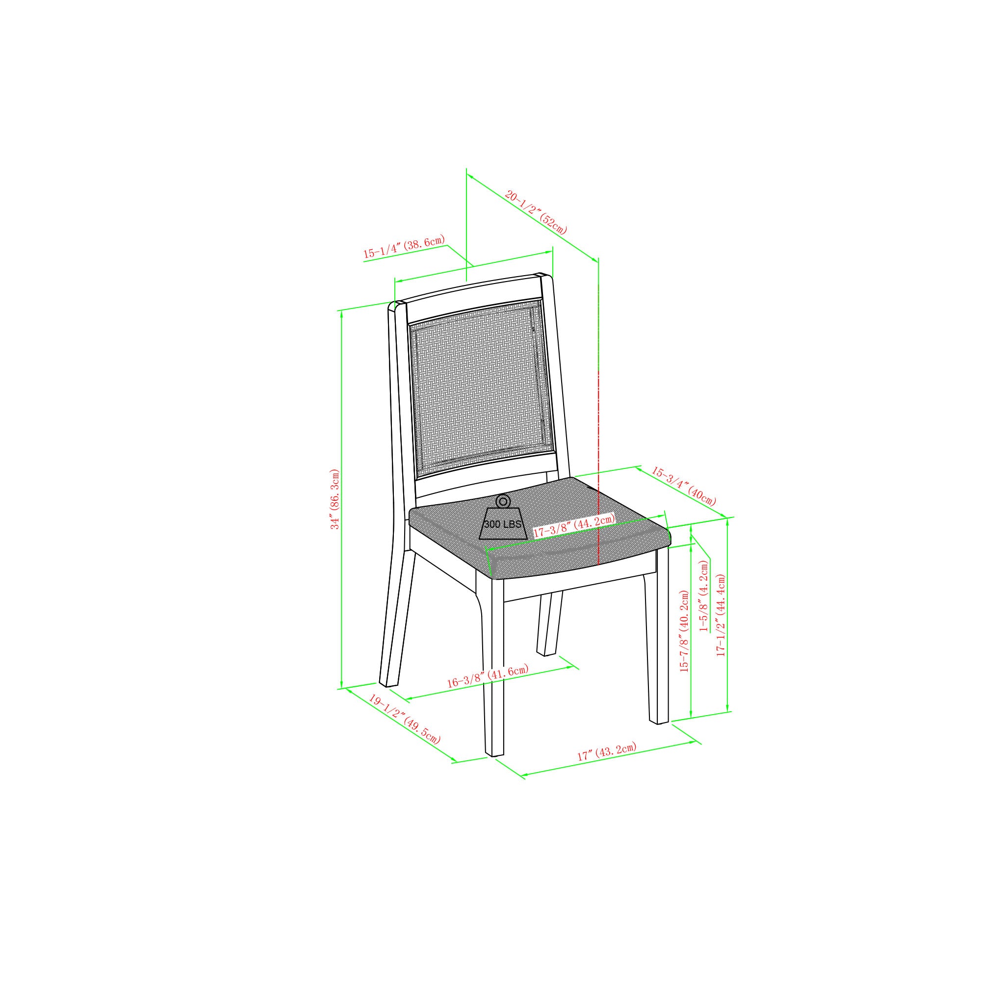 - Material: Solid wood frame with easy-to-clean woven upholstery for the seat.