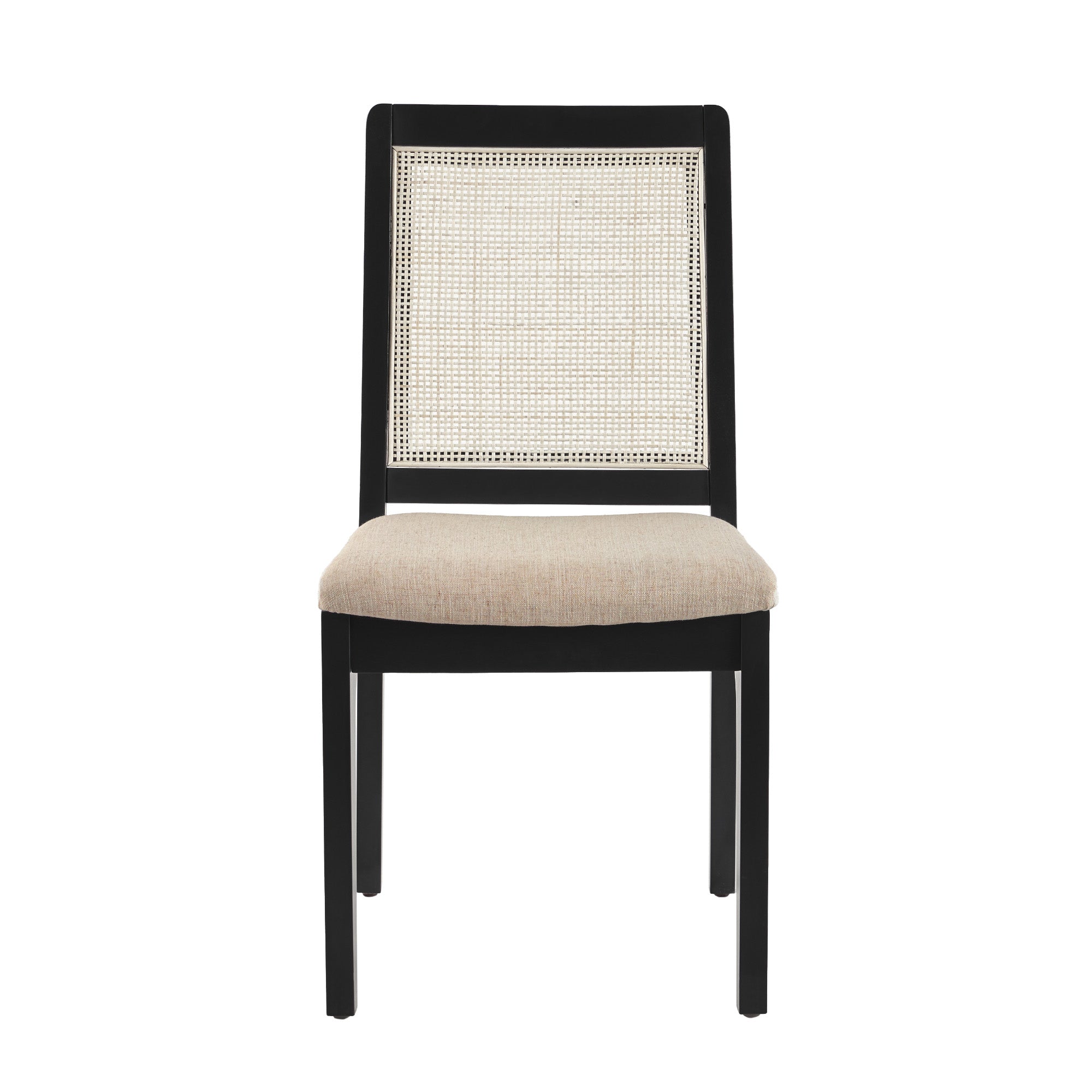 Elevate your dining space with this pair of modern solid wood chairs, blending clean-lined silhouette and warm natural textures. The black finish and woven rattan inset back create a contemporary yet inviting look, while durable construction and thoughtful details ensure everyday comfort and long-lasting use.