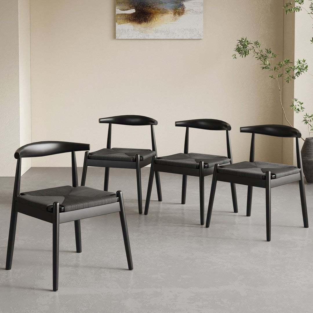 Bring warmth and artisanal character to your dining space with these mid-century modern dining chairs. Designed for everyday comfort and built to last, each chair pairs a solid oak frame with a handwoven kraft paper twine seat for a natural, breathable finish that complements both contemporary and classic interiors.