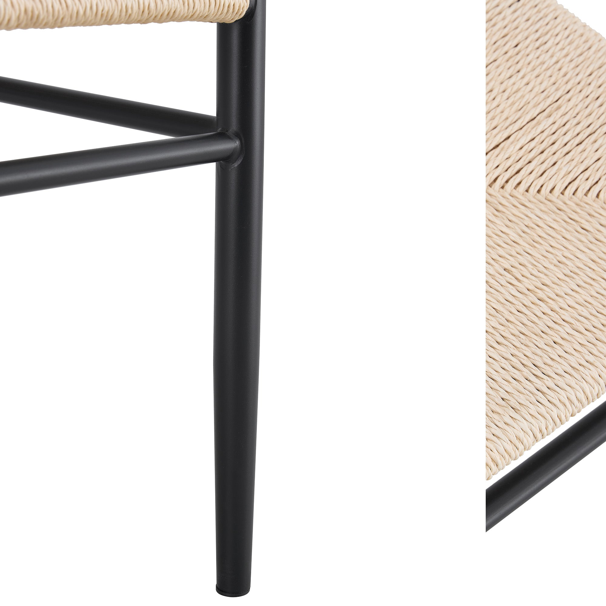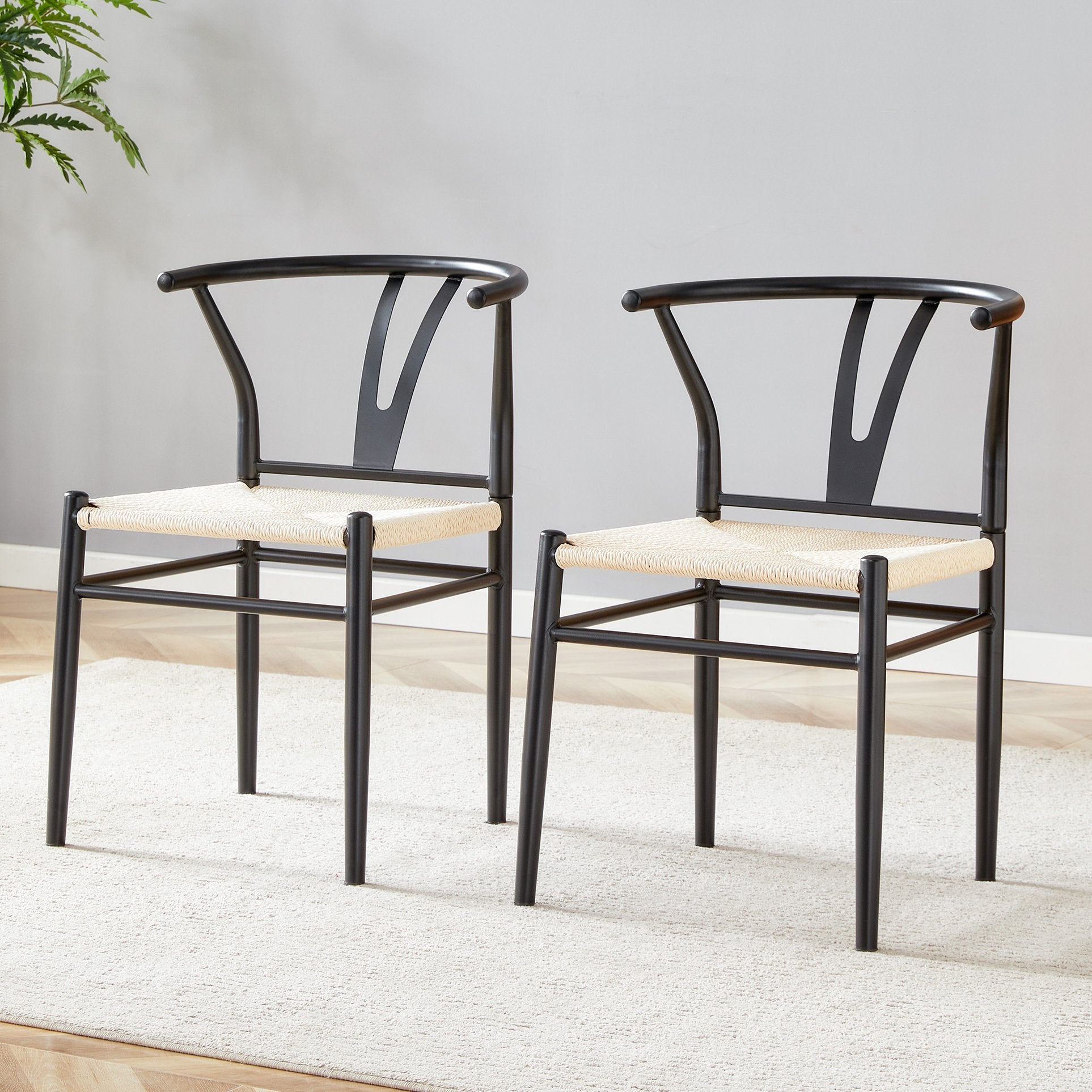 Bring timeless medieval charm and modern durability to your dining space with this set of four Wesborn Y-shaped armchairs. Expertly combining black ironwork with a natural woven rope seat, these chairs offer ergonomic comfort, environmental safety, and a versatile aesthetic that suits dining rooms, cafes, home offices, and more. Built for everyday use, they require minimal assembly and are crafted to last while maintaining a clean, sculptural silhouette.