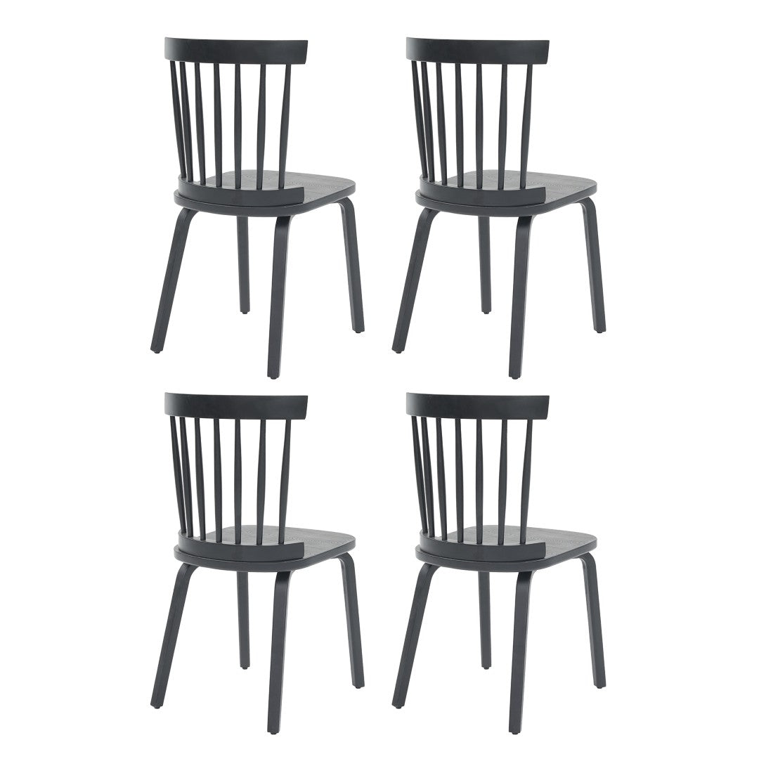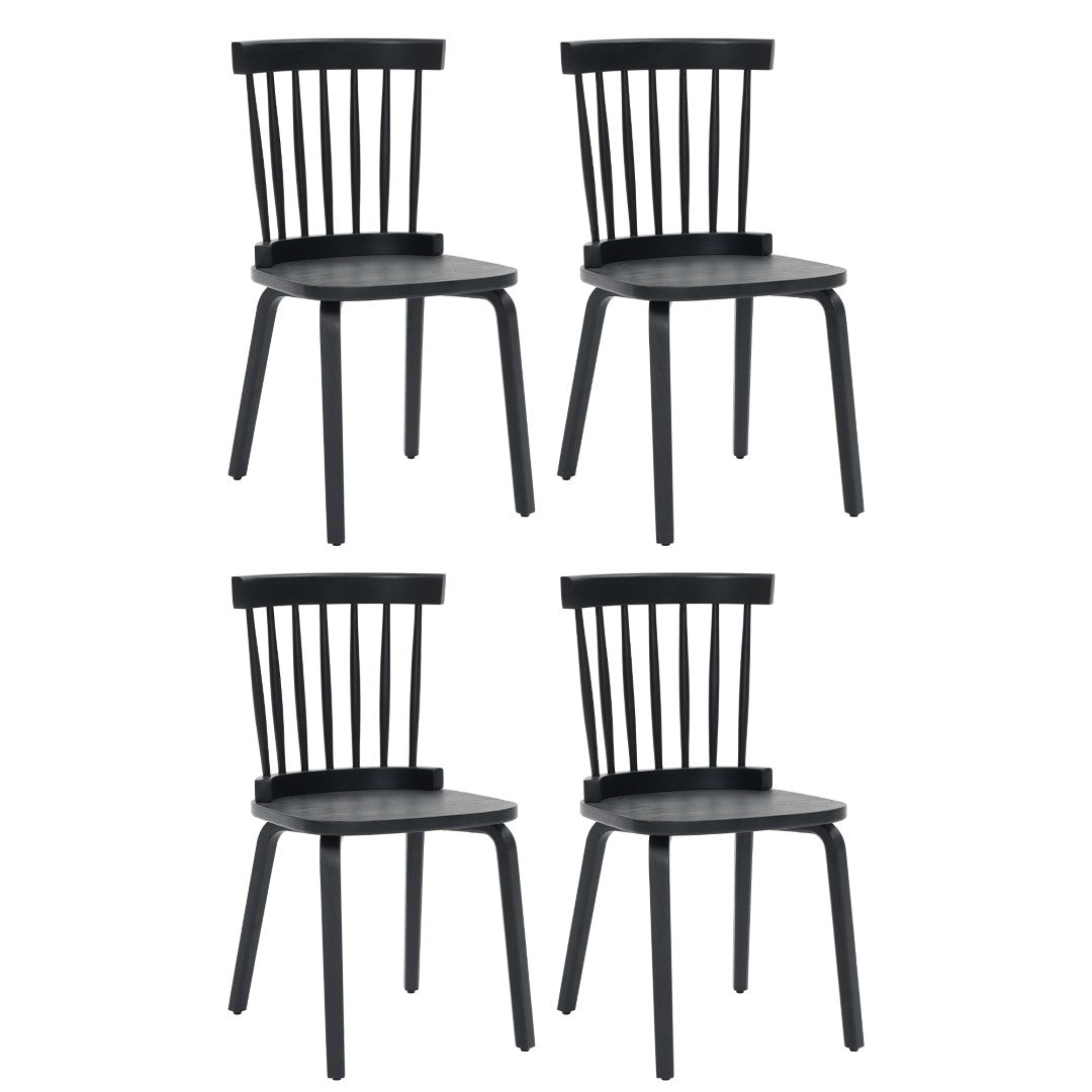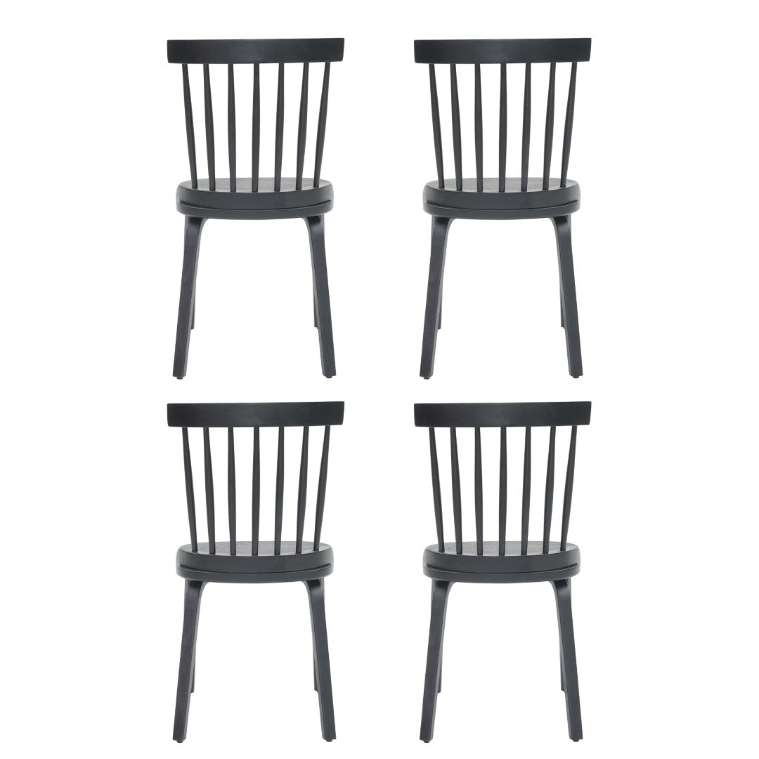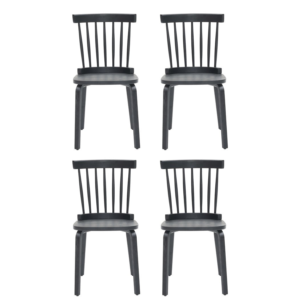 Bring timeless farmhouse charm and everyday comfort to your dining area with this set of four Windsor-style wooden chairs. Finished in versatile black and crafted for durability, each chair blends mid-century and French country influences with ergonomic design to create a welcoming, stylish seating solution for home or commercial use.