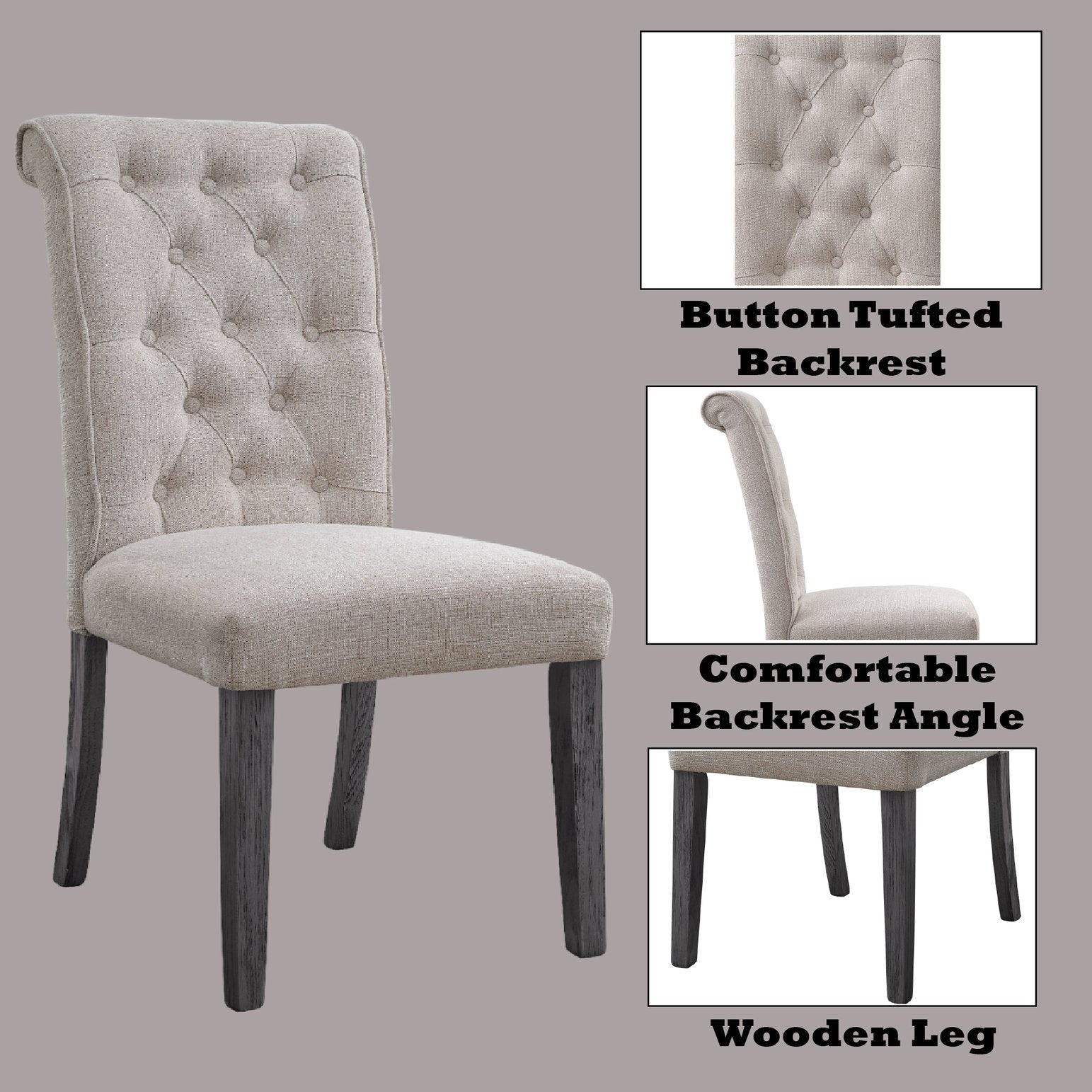 - Button Tufted Backrest, Padded Chair Back & Seat Cushion, Chair Back w/Slightly and Elegantly Curved Design