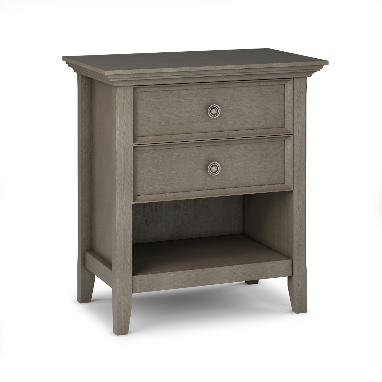 Bring timeless farmhouse charm to your bedroom or living space with this handcrafted bedside table. Built from high-quality solid wood and finished in a Farmhouse Grey stain, it blends classic detailing with functional storage to keep essentials organized and within reach.