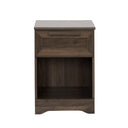 Bring warm, modern style and practical storage to your bedroom with this compact walnut nightstand. Its faux-wood finish delivers the look of real wood with added durability and moisture resistance, while a single drawer and lower shelf keep bedside essentials organized and within reach. Ideal for smaller spaces, it blends seamlessly with a variety of decor styles.