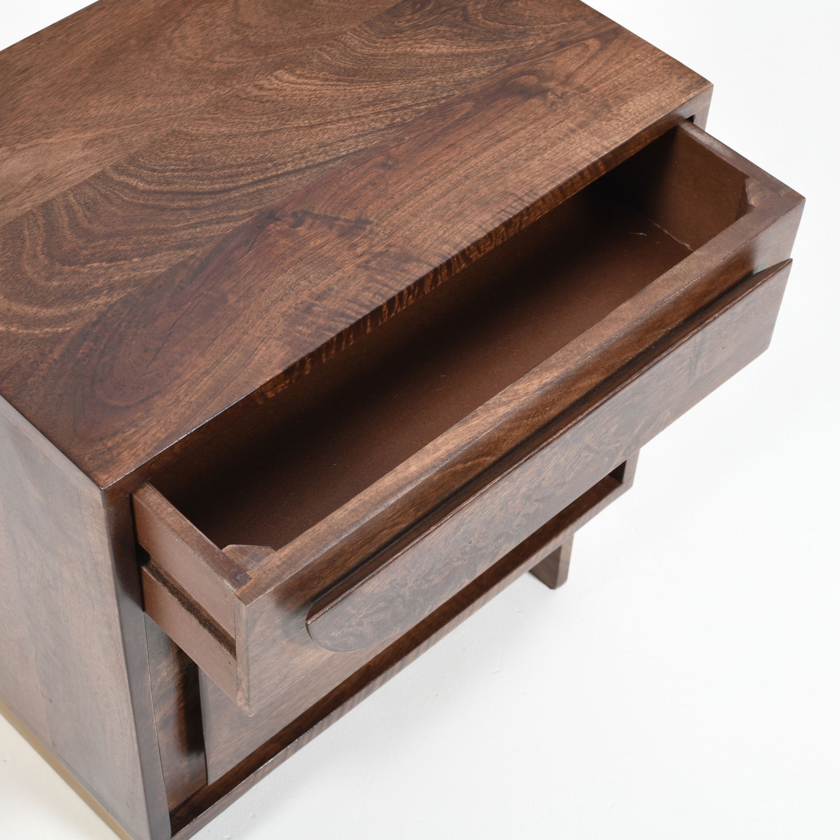 Bring warm, natural character to your bedroom with this handcrafted solid wood nightstand in a rich walnut finish. Thoughtfully designed with clean lines and a minimalist cutout handle, it balances practical storage with an elegant silhouette—ideal for keeping bedside essentials organized while complementing modern or transitional decor.