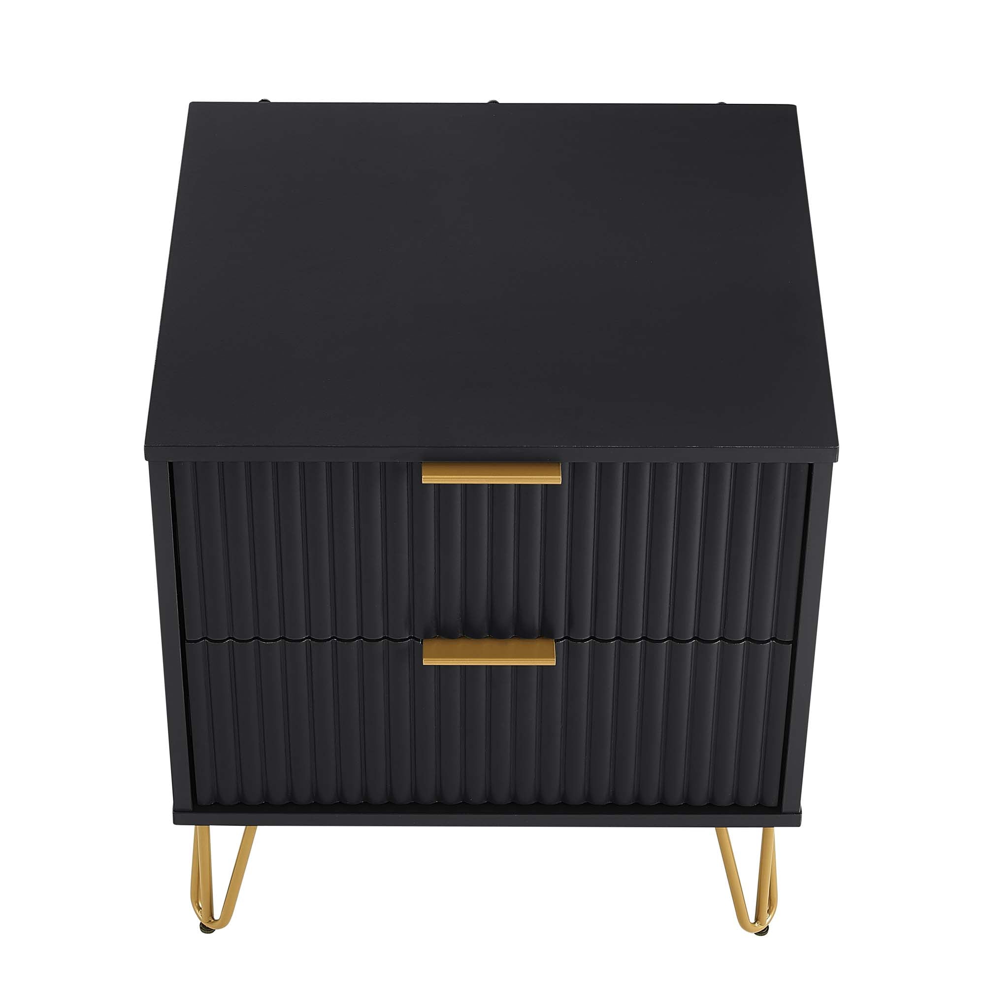 - Color & Material: Sleek black MDF construction with textured vertical fluted drawer fronts