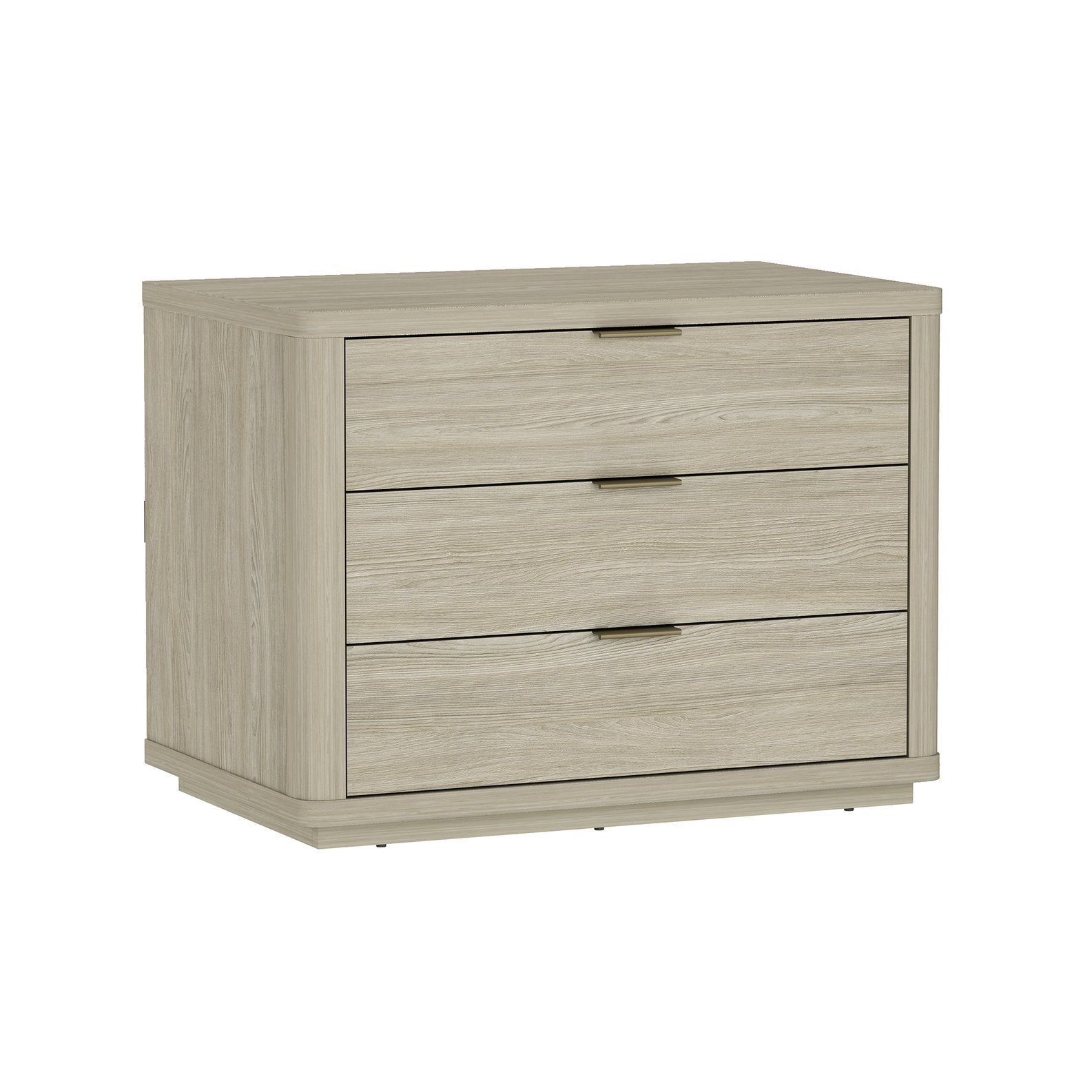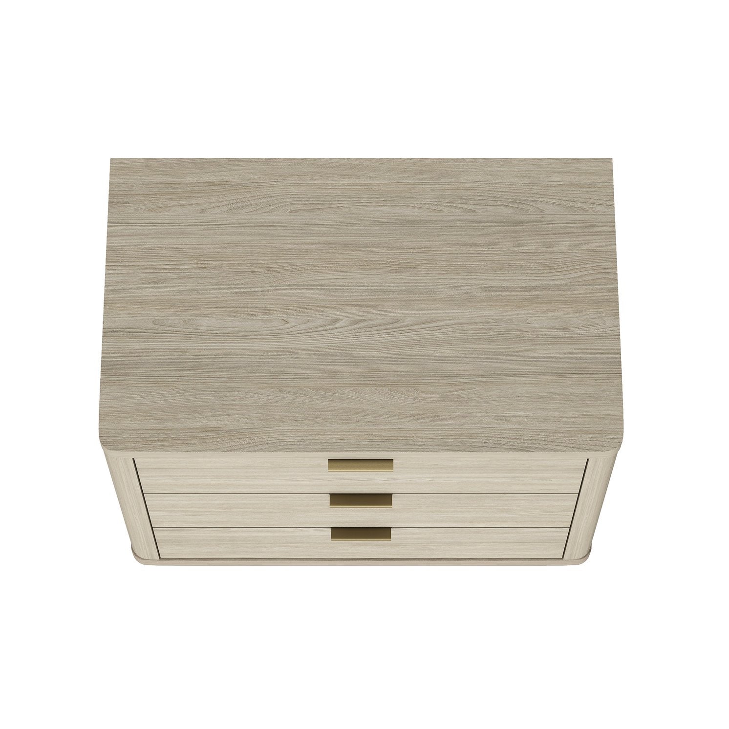 A modern, streamlined bedside solution that blends clean lines with practical storage. The Evelyn nightstand in natural finish offers a versatile surface for lamps and decor plus three full-extension drawers to keep essentials neatly organized. Designed with safety and easy maintenance in mind, it complements contemporary or transitional bedrooms while maximizing functionality.