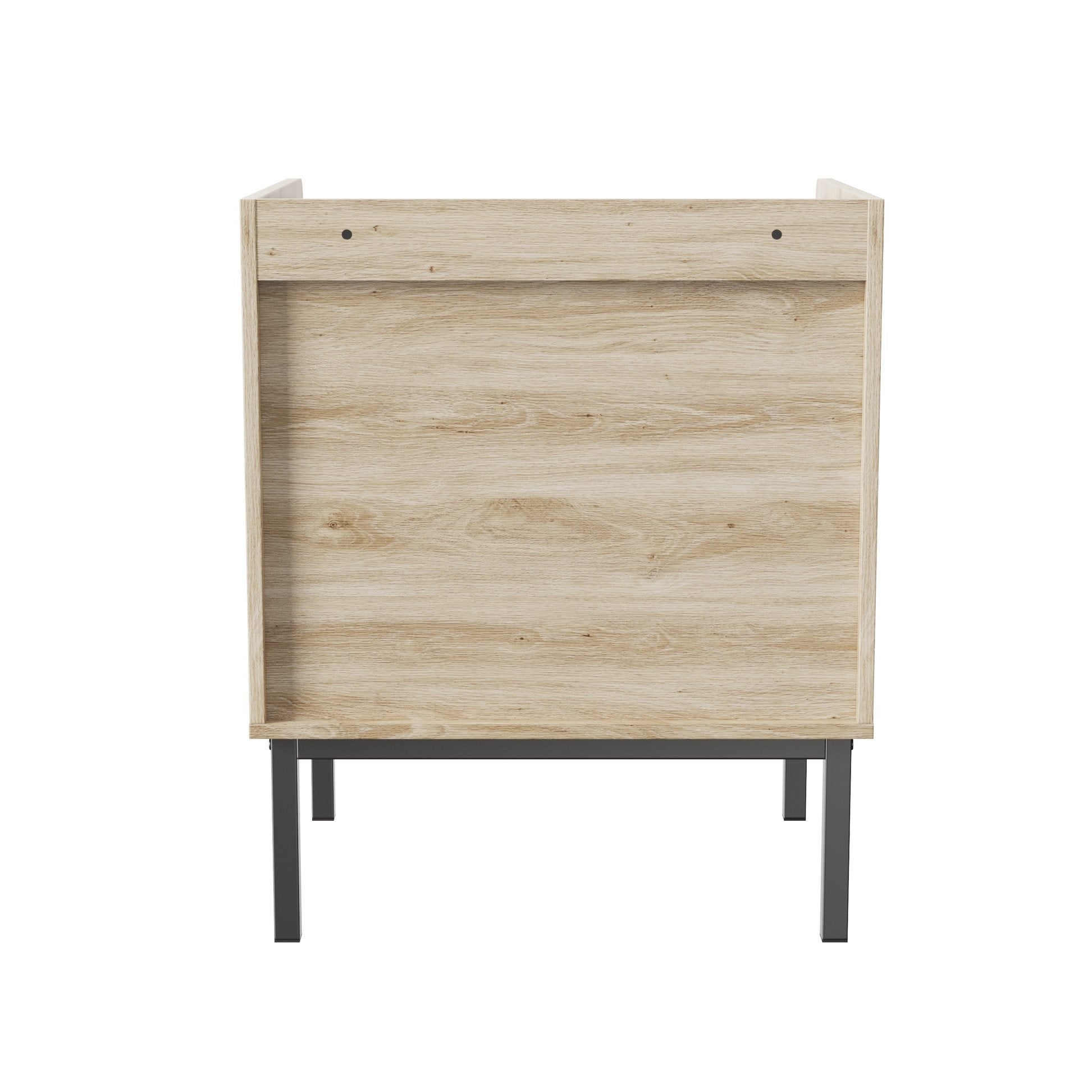 - Materials & Finish: Durable MDF body with powder-coated iron legs; natural wood-tone surfaces paired with black accents for a contemporary two-tone look