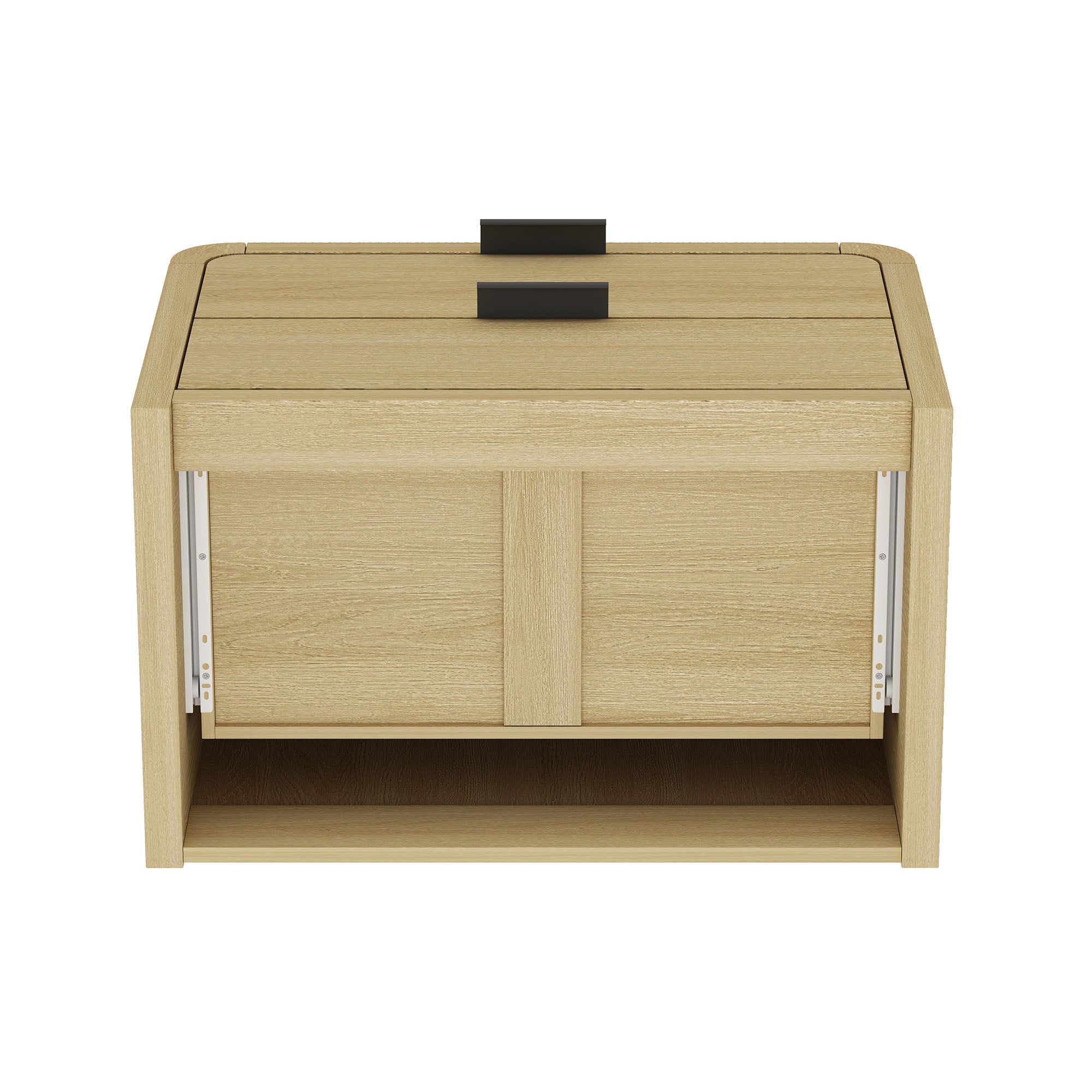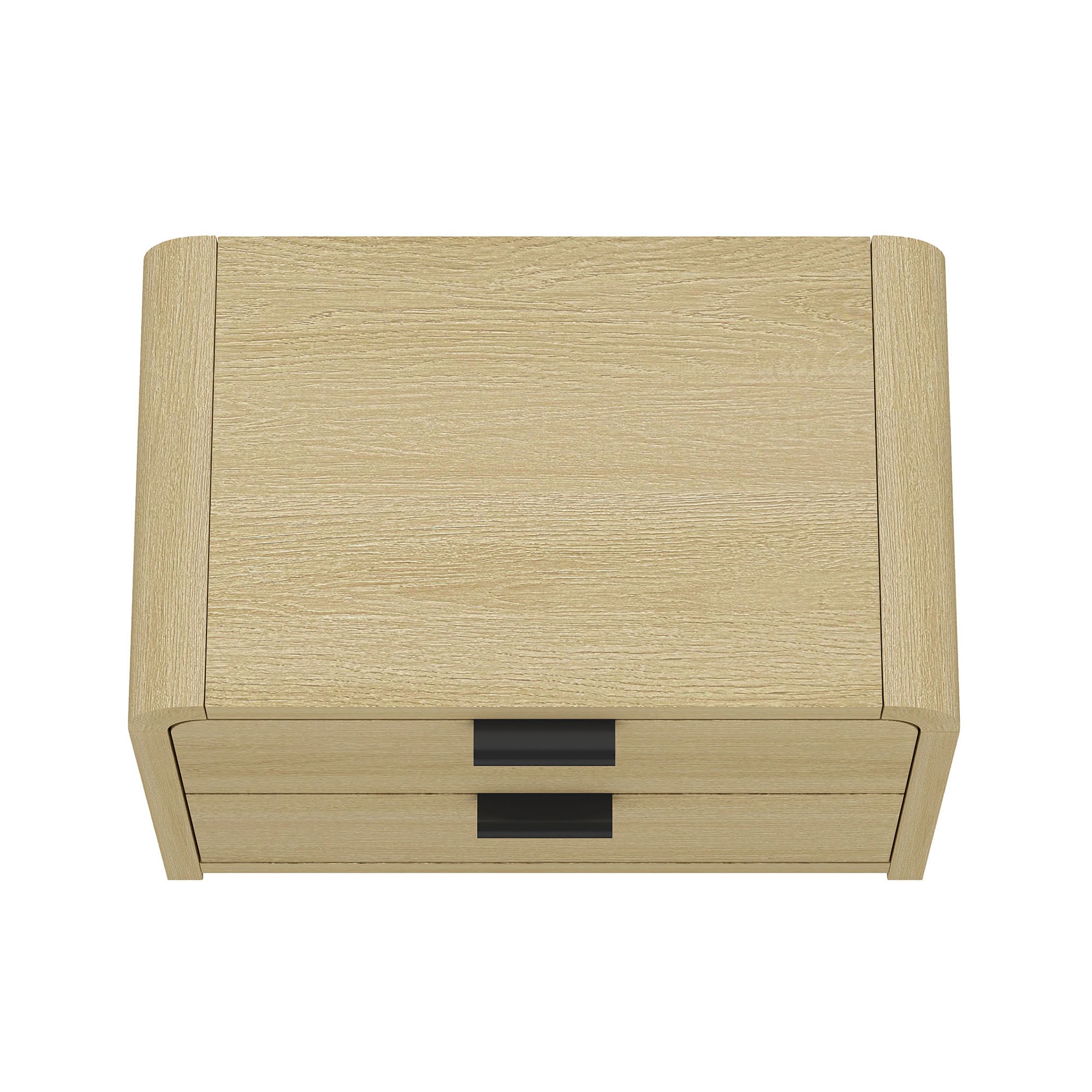 A sleek blend of modern minimalism and classic warmth, this nightstand brings practical bedside storage and refined style to any bedroom. Its clean silhouette, rounded solid-wood corners, and contrasting natural oak and black finishes make it equally suited to contemporary and transitional interiors—perfect for holding a lamp, books, and nightly essentials.