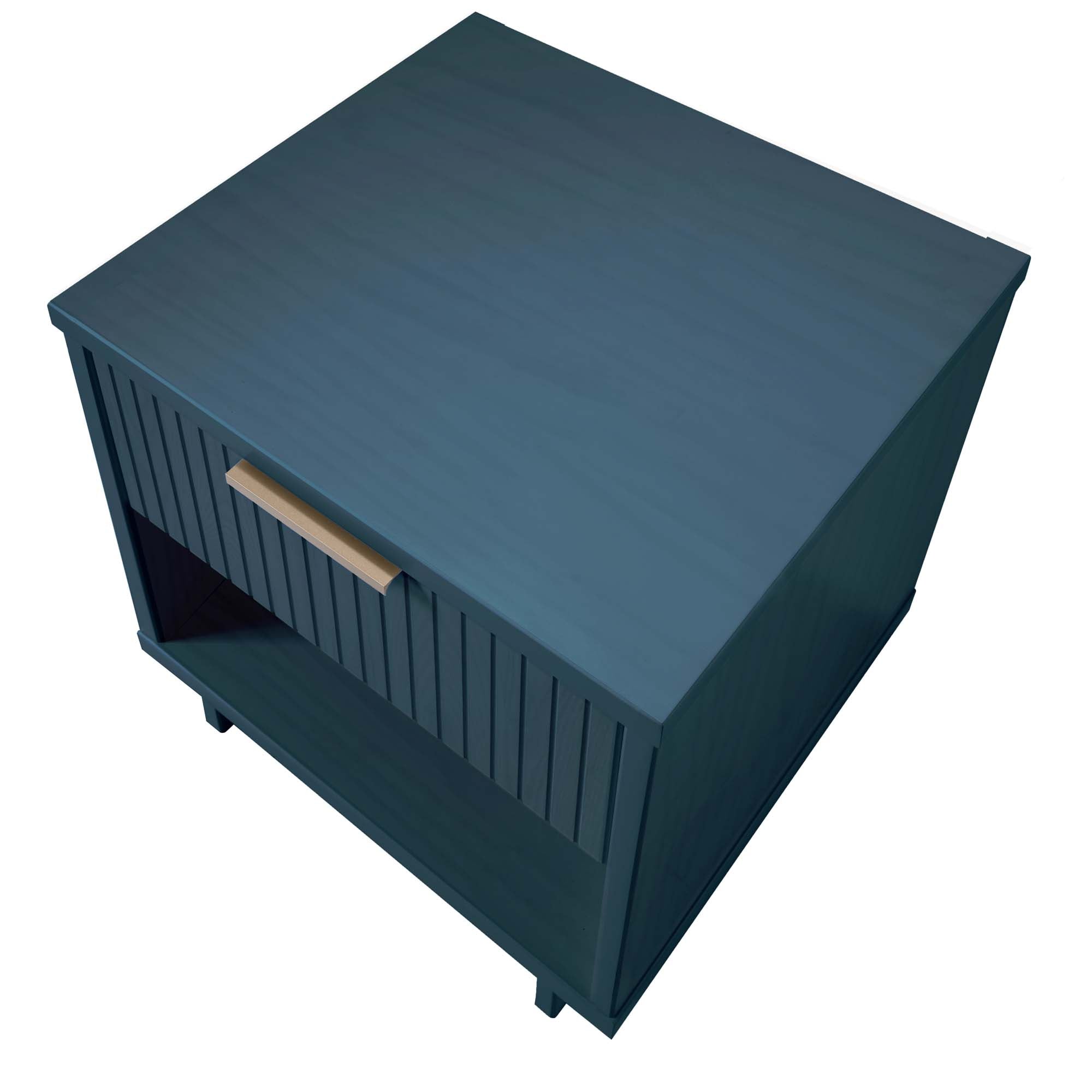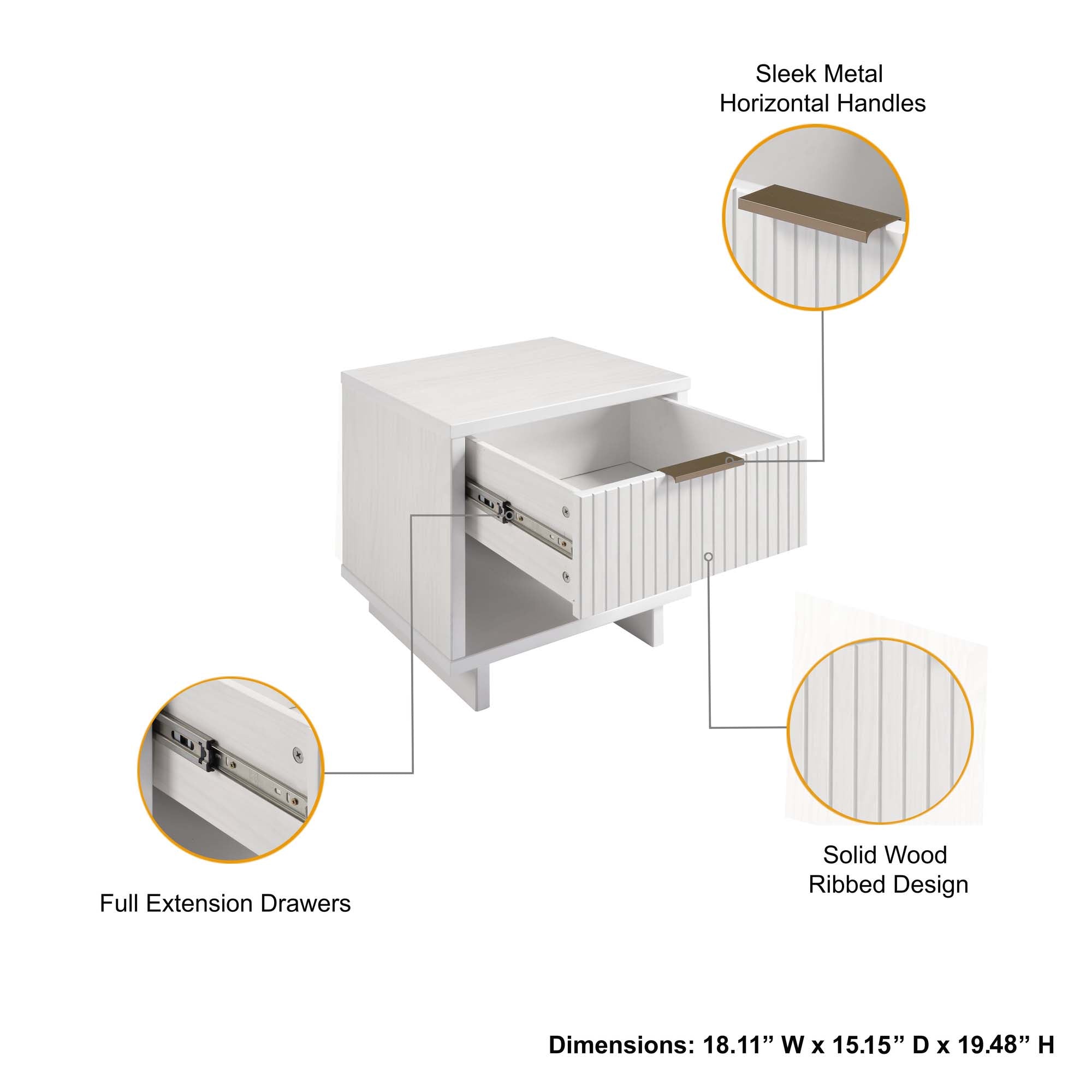 - Storage: Includes 1 full-extension drawer with a solid wood ribbed front featuring vertical textured lines for visual interest.
