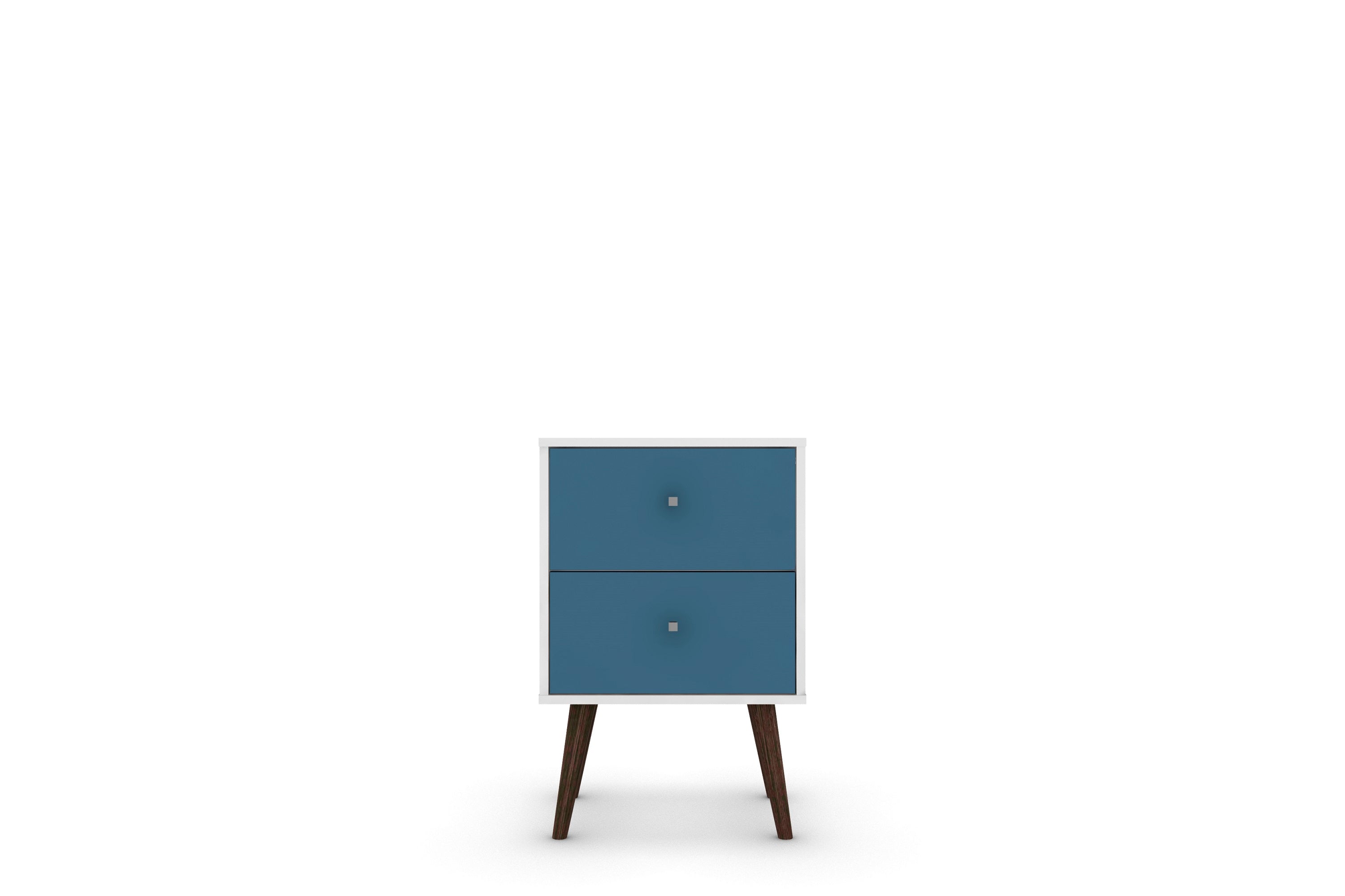 Bring a fresh coastal vibe to your bedroom with this compact, two-drawer nightstand finished in aqua blue and white. Designed for small spaces, it combines playful color with practical storage and durable construction—ideal for beside a bed, in a guest room, or as an accent table in a living area.