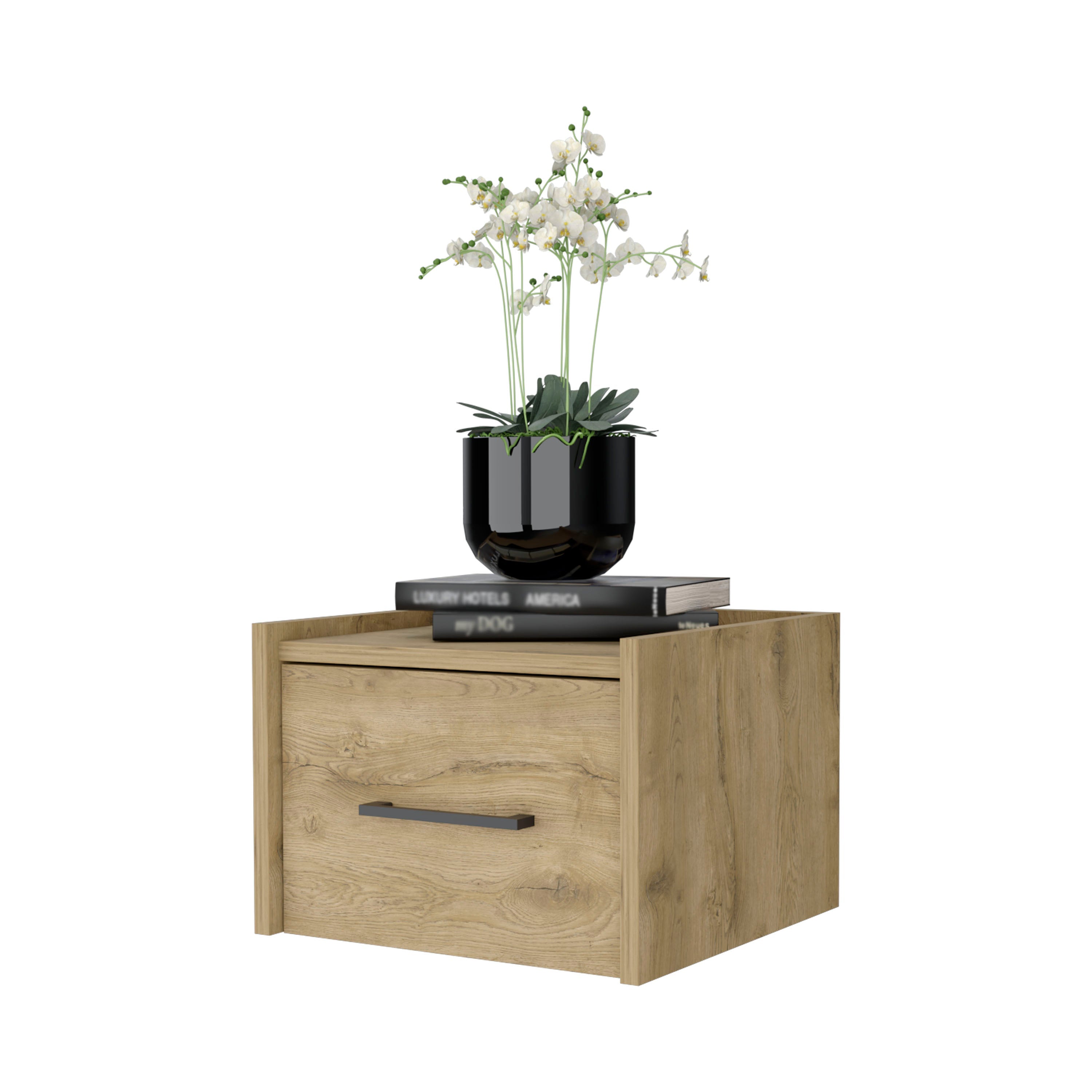 - Enjoy effortless access with the sleek handle, ensuring easy drawer accessibility and adding a touch of modernity to the floating nightstand.