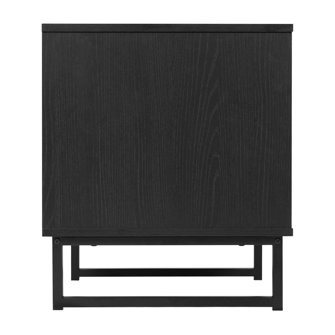 Bring timeless mid-century modern style to your bedroom or living area with this versatile nightstand/end table that balances form and function. Clean lines, a rattan-accented drawer front, and a matte black finish make it a stylish focal point, while thoughtful storage and sturdy construction ensure everyday practicality in small spaces.