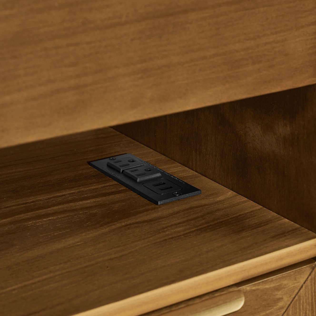- Built-In Charging Station: Integrated power solution with 2 standard outlets and 2 USB ports plus a cable management opening to keep cords organized and accessible.
