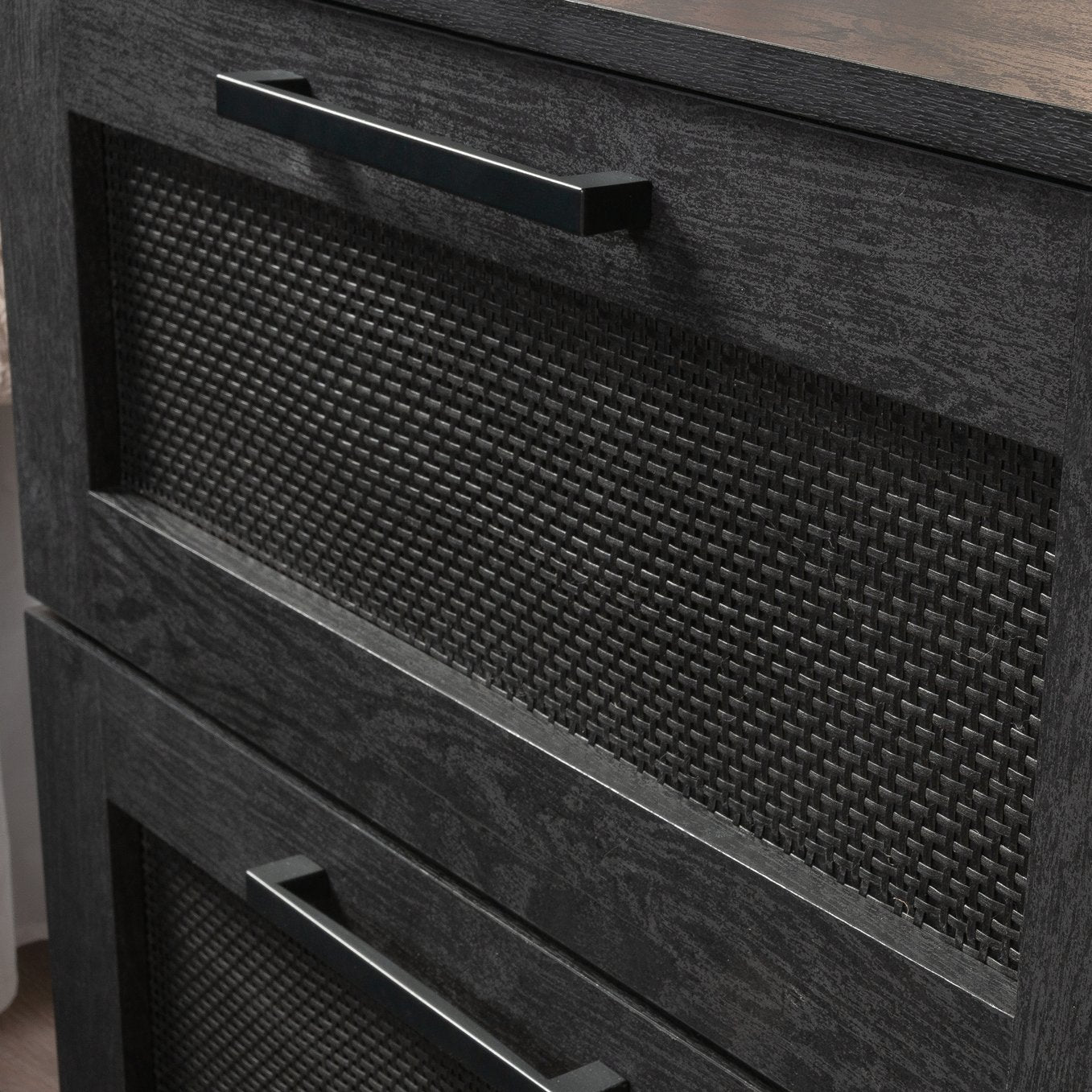 Add smart, stylish storage to your bedroom with this sleek black night stand — designed to blend with modern or classic decor while offering practical organization. Built from engineered wood with a durable finish and smooth-glide drawers, it provides a reliable bedside surface and neat storage for nighttime essentials, guest rooms, or compact living spaces.