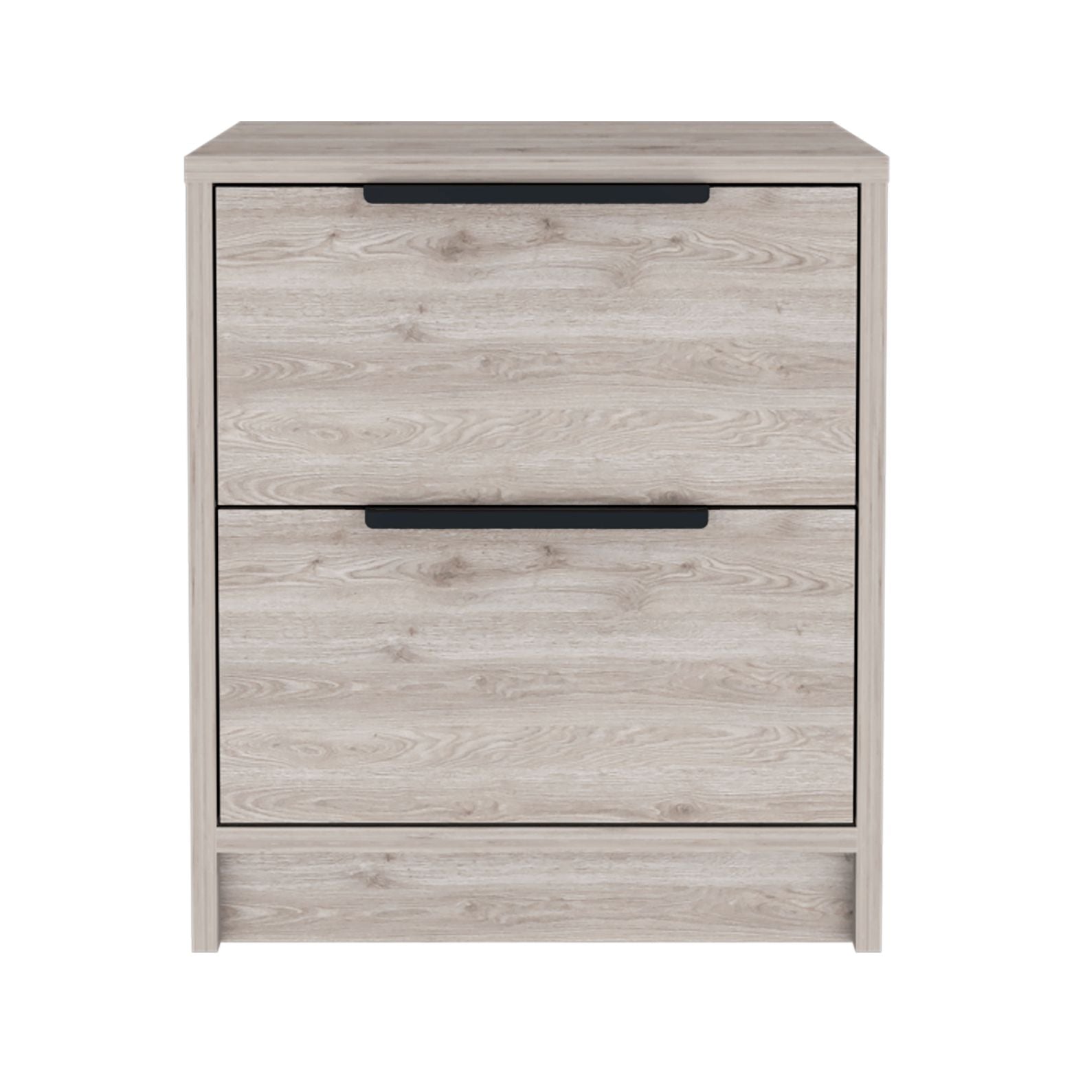 Give your bedroom a clean, modern update with this light gray nightstand—designed for everyday convenience and lasting durability. Its compact profile and two smooth-gliding drawers provide organized bedside storage while the subtle finish and metal handles complement a variety of décor styles.