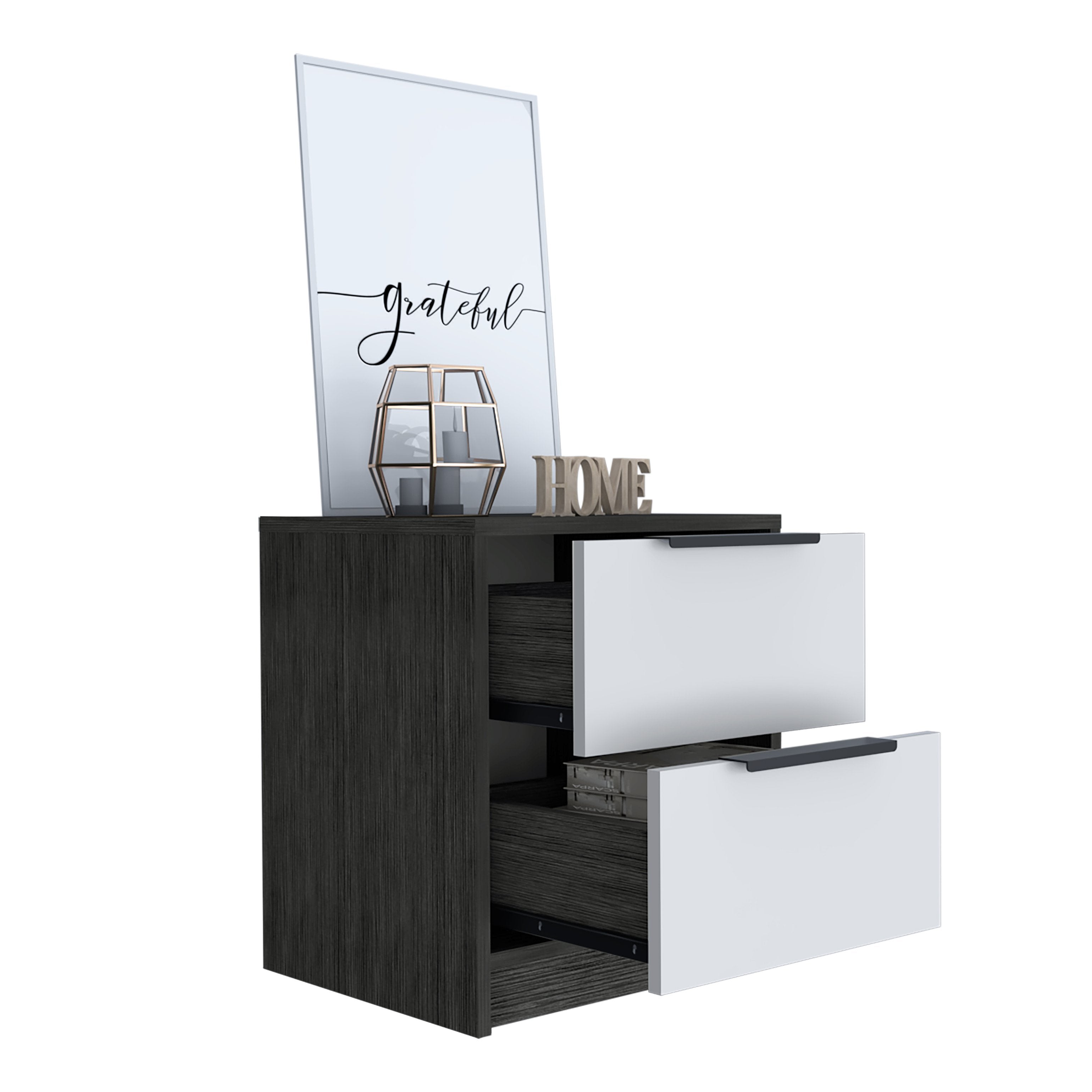 Bring modern function and understated style to your bedroom with this two-drawer nightstand. The smokey oak and white finish creates a warm yet contemporary look, while metal hardware and a compact footprint make it a practical addition beside any bed. Ideal for storing bedtime essentials and keeping surfaces tidy, this piece balances clean lines with everyday durability.