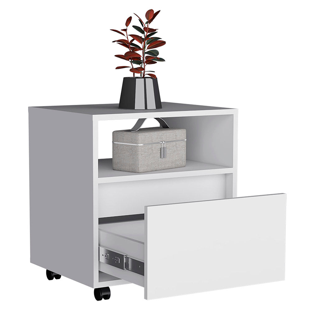 Add a touch of clean, modern simplicity to any room with this compact white nightstand. Designed for versatility and everyday use, it pairs a slim footprint with useful storage—an ideal bedside companion for small spaces, guest rooms, or hallways.
