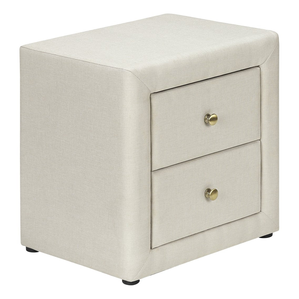 Add a warm, transitional touch to your bedroom or living area with this upholstered beige linen-look nightstand. Thoughtfully designed for both style and function, it combines soft textured upholstery, convenient storage, and a compact footprint that fits beside beds, sofas, or accent chairs.