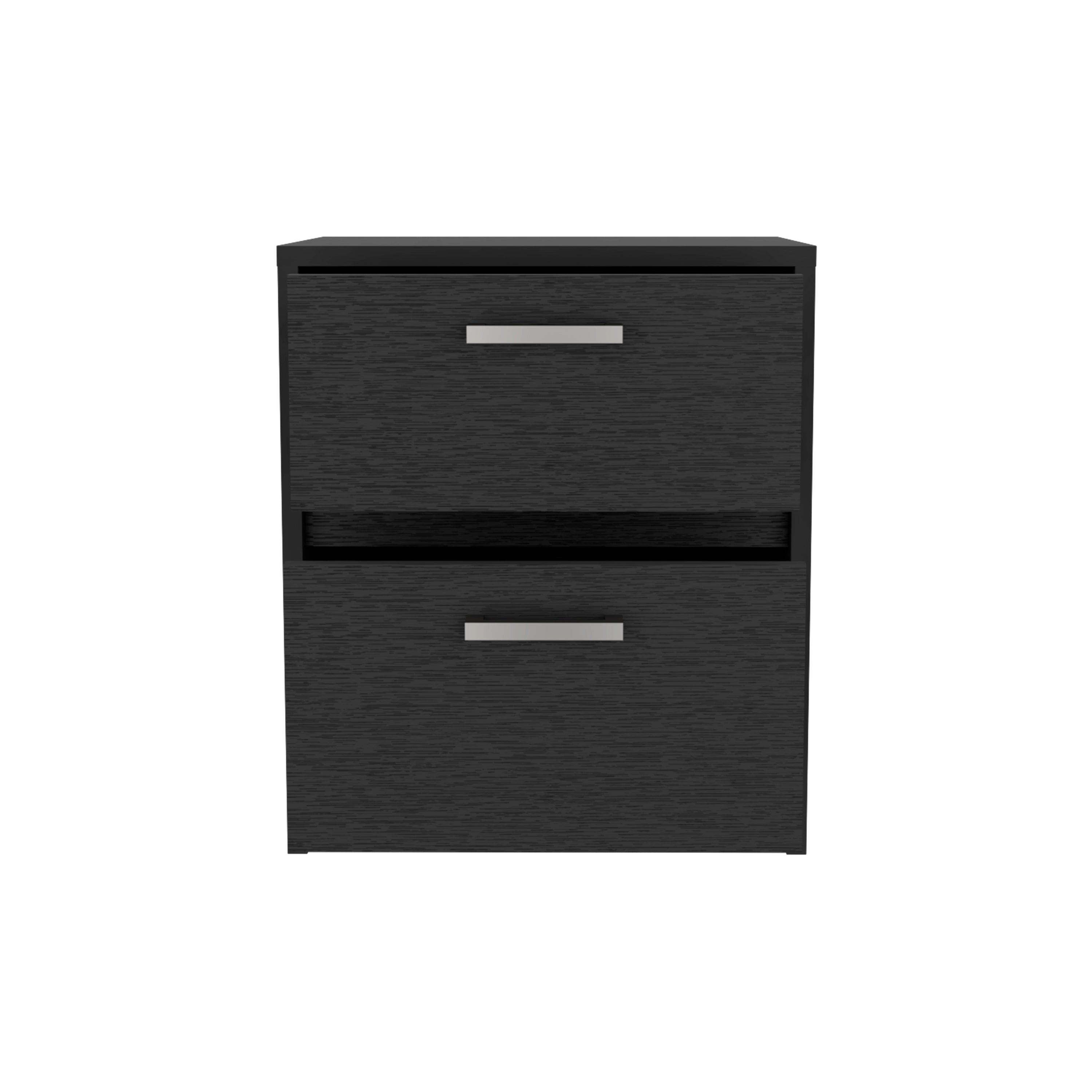 Keep your bedside essentials organized with this sleek black nightstand that blends clean modern lines with practical storage. Its compact footprint makes it ideal for small bedrooms, apartments, or as an accent piece beside a sofa or reading chair.
