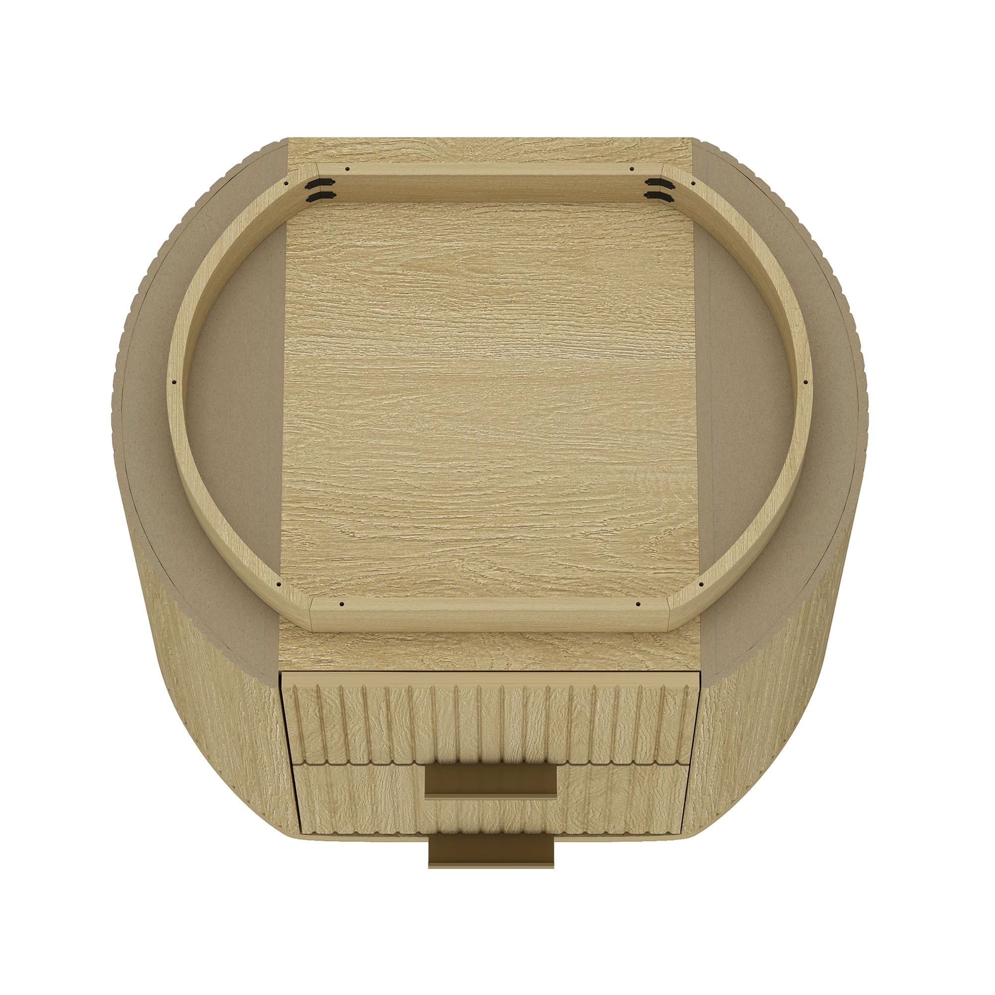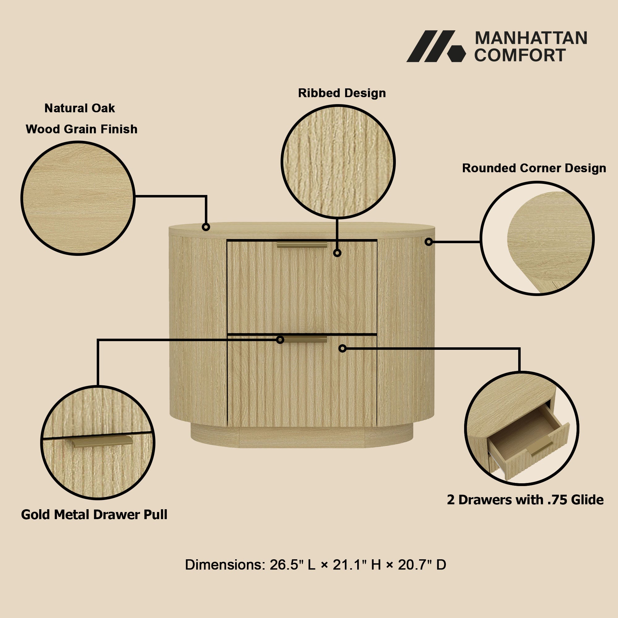 Elevate your bedroom with the Olivia 27" Nightstand — a refined blend of modern minimalism and classic warmth. Its natural oak finish and ribbed wood-grain texture create a subtle, sophisticated focal point while offering practical bedside storage with two smooth-gliding drawers. Designed for easy assembly and everyday use, this nightstand balances form and function for a polished, cohesive look.