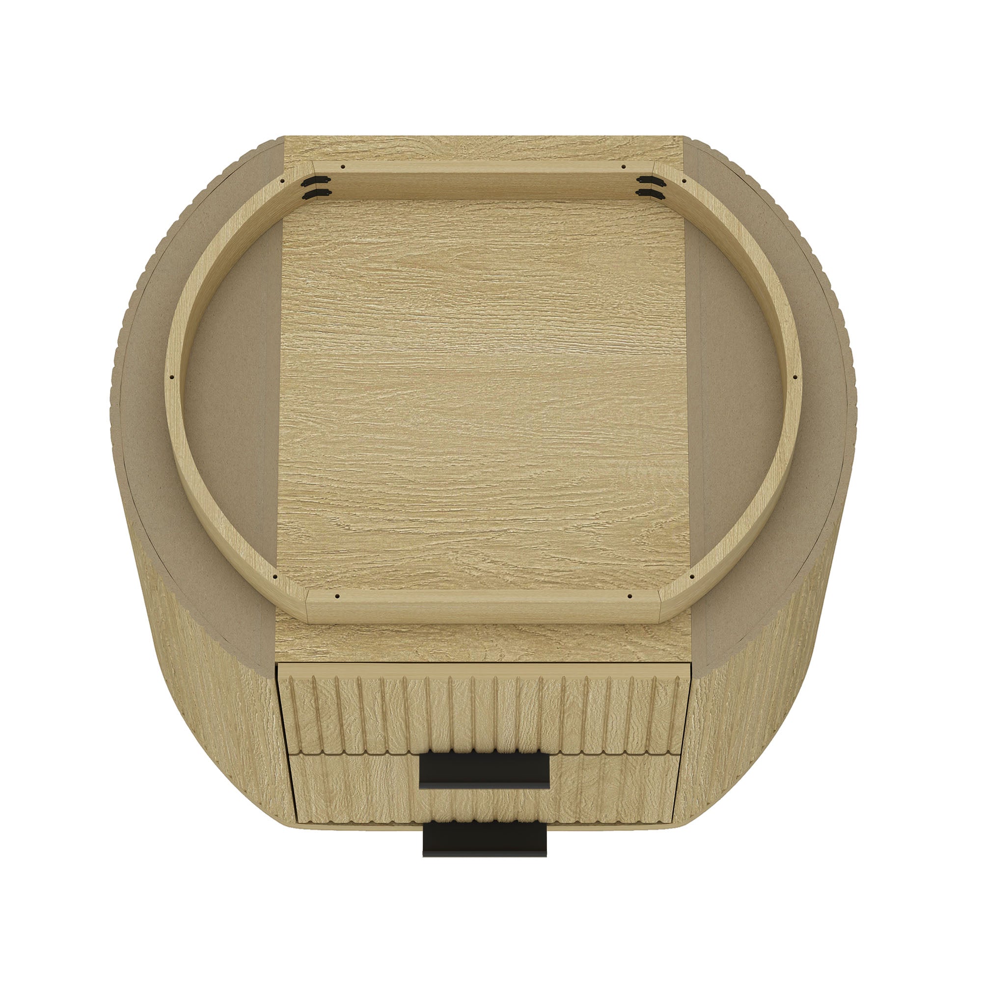 Elevate your bedroom with the Olivia 27" Nightstand — a refined blend of modern minimalism and classic warmth. Its natural oak finish and ribbed wood-grain texture create a subtle, sophisticated focal point while offering practical bedside storage with two smooth-gliding drawers. Designed for easy assembly and everyday use, this nightstand balances form and function for a polished, cohesive look.