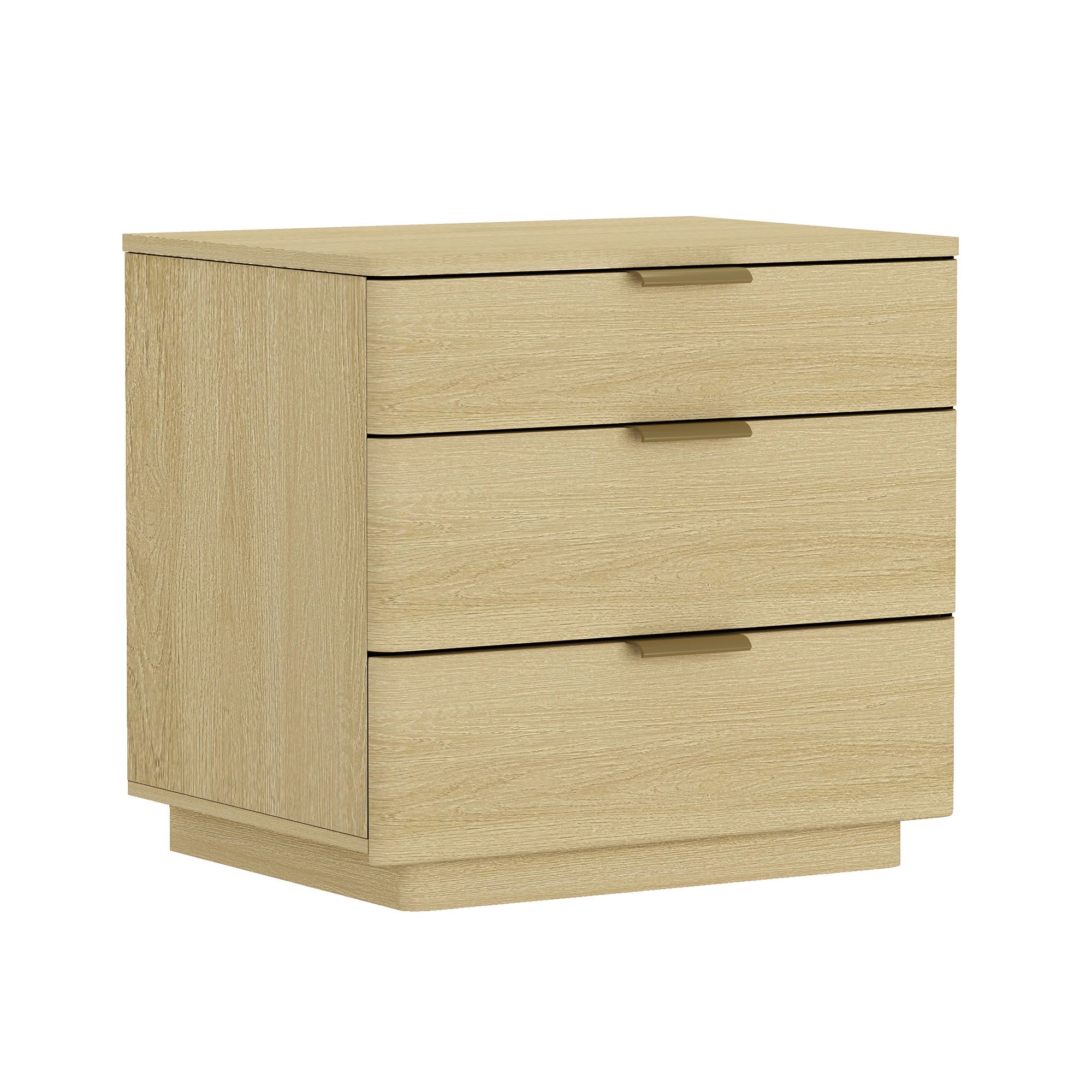 Enhance your bedroom with the Payton 26" Nightstand — a refined blend of modern minimalism and practical storage. Its smooth rounded corners, pedestal base, and metal glam handles offer a timeless look that complements a variety of decor styles while providing three roomy drawers to keep bedside essentials organized and within reach.