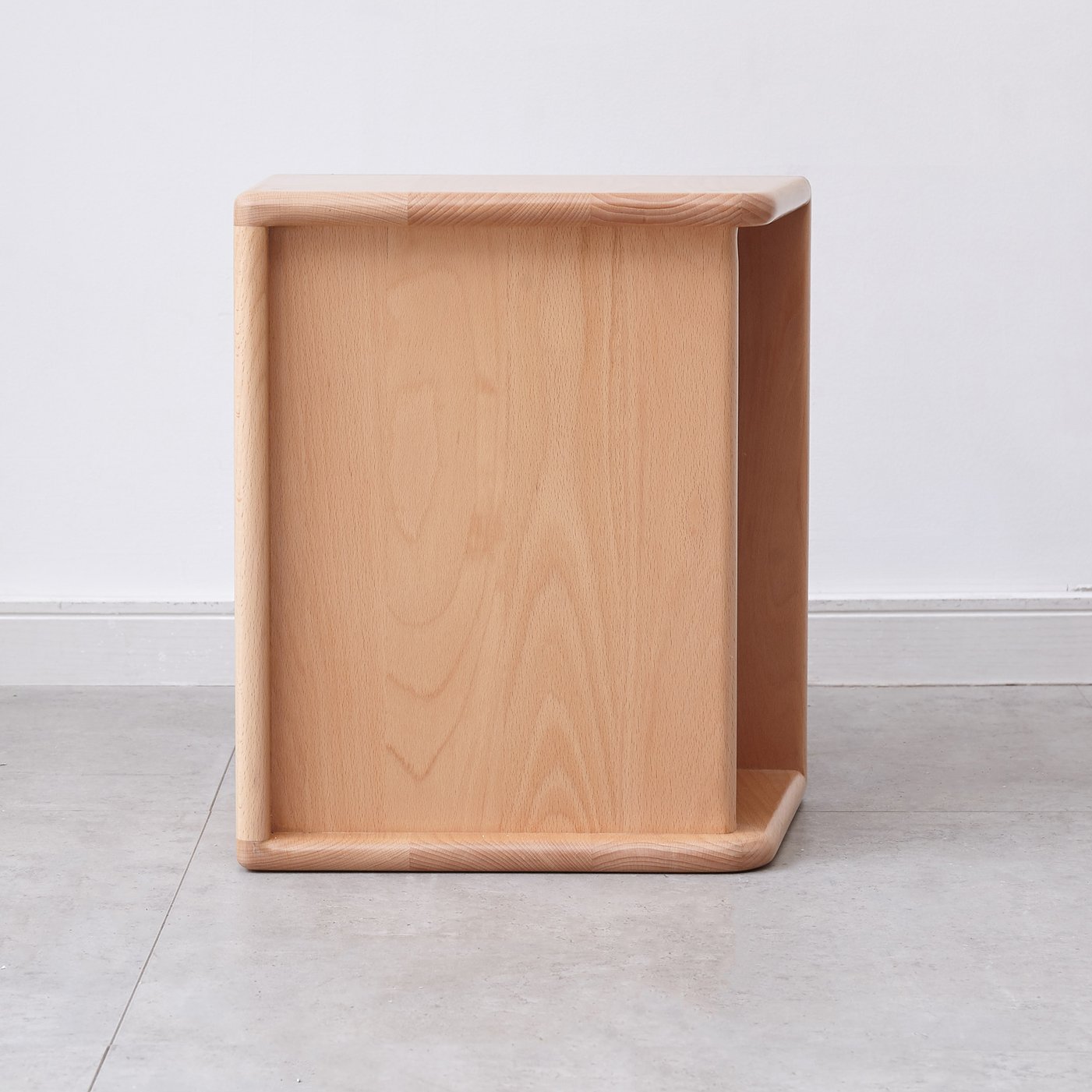 Enhance your bedroom with a minimalist, Scandinavian-inspired bedside cabinet crafted from solid European beech. This compact nightstand blends warm natural grain, thoughtful safety details, and practical storage to create a stylish yet functional accent for small spaces.