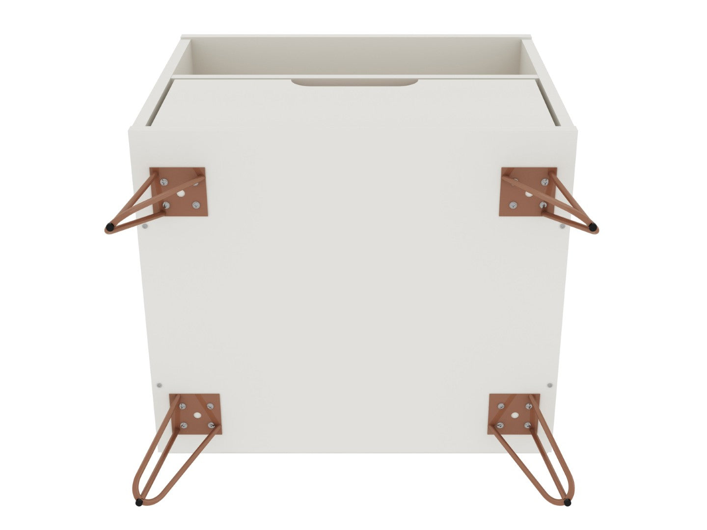 - Color & Material: Off white finish on MDF with fashionable splayed metal legs for added stability and visual interest.