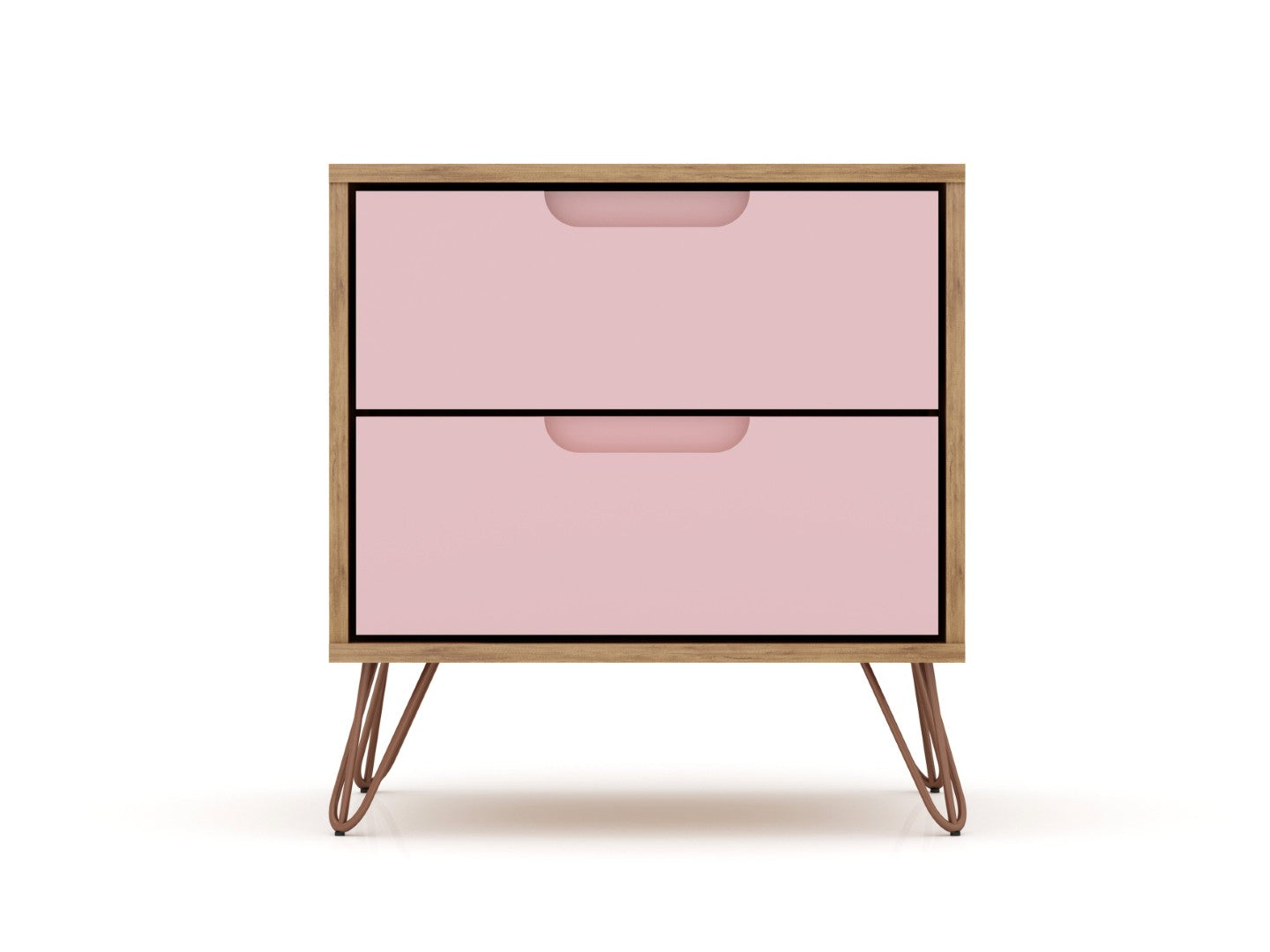 Add a playful yet modern touch to your bedroom with this compact, fashion-forward 2-drawer nightstand. Designed for both style and function, it pairs a soft pink finish with durable metal wire legs and customizable handle options, making it an ideal bedside companion for contemporary interiors or a chic accent in any room.