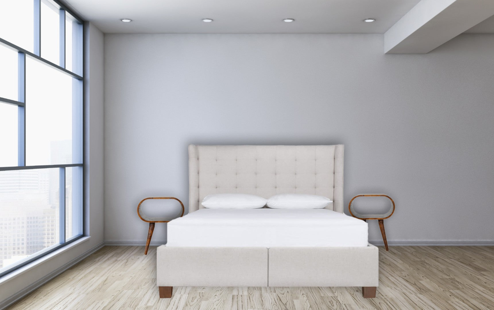 - Design: Circular profile with an open shelf layout for easy access and display of bedside items.