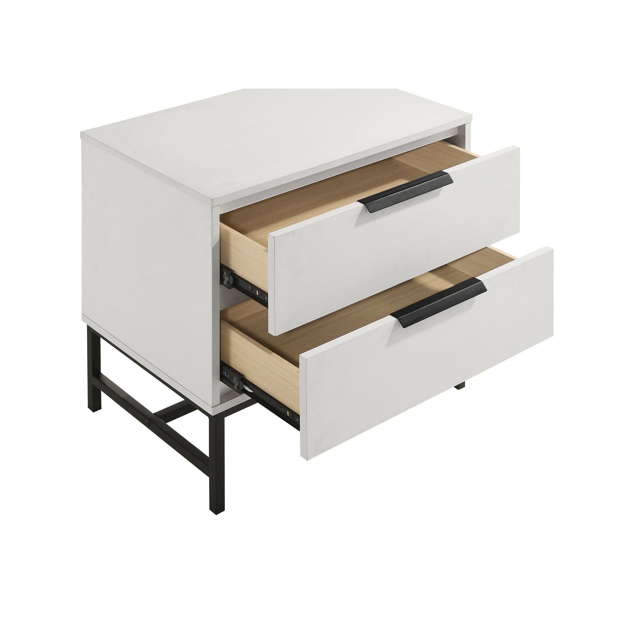 Elevate your bedroom with a clean, contemporary bedside solution that blends minimalist form with practical storage. This two-drawer nightstand features a crisp white finish and bold black hardware, creating a modern contrast that complements a variety of decor styles while keeping essentials within easy reach.