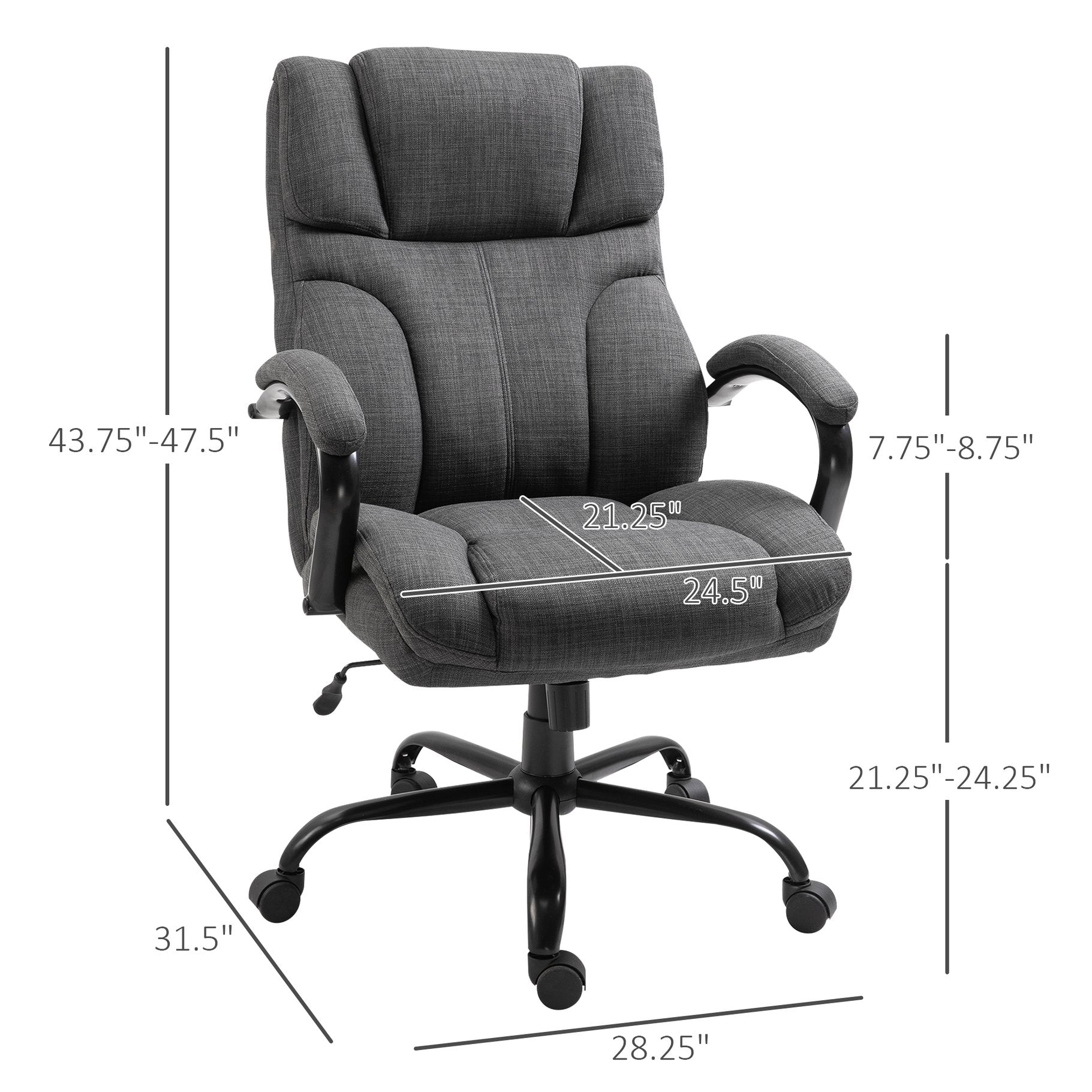 Upgrade your workspace with a heavy-duty executive chair designed for big and tall users who need reliable comfort and stability through long workdays. Built with a wide, supportive seat, breathable linen-feel upholstery, and resilient padding, this chair balances ergonomic features with a sturdy 500 lb weight capacity—ideal for home offices, workstations, or gaming setups.