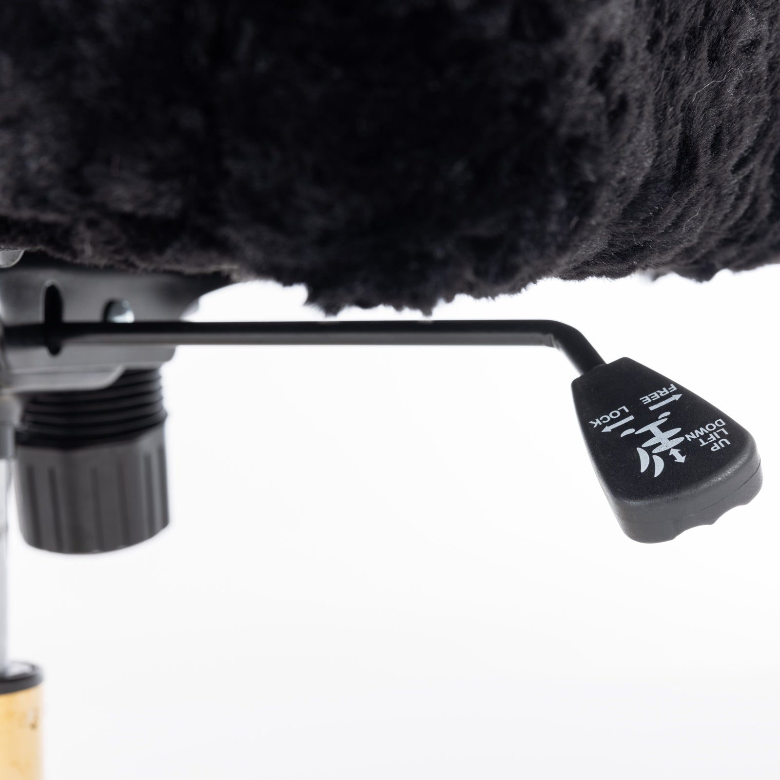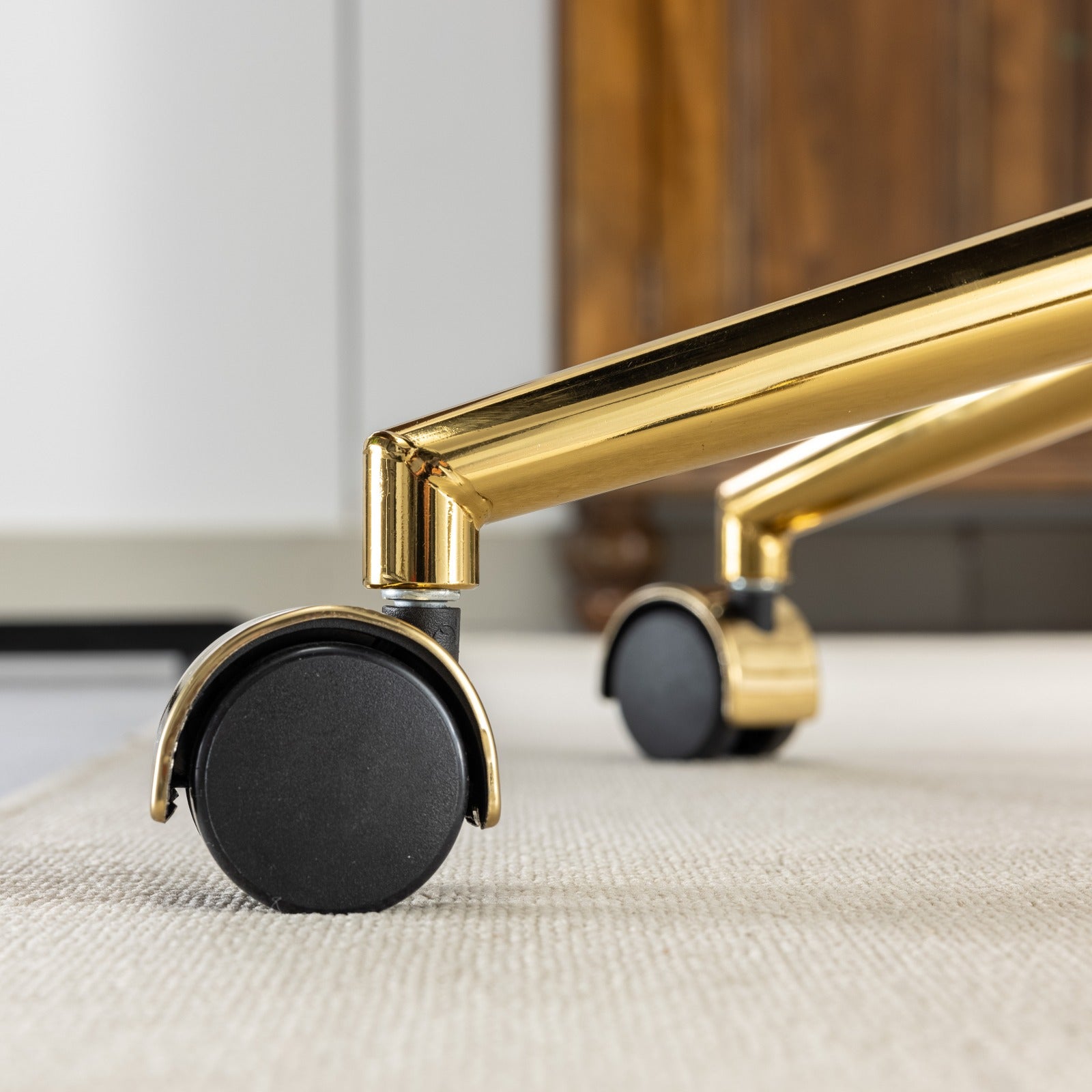 Elevate your workspace or vanity with this stylish and comfortable upholstered office chair. Designed with a plush artificial rabbit-hair finish and a striking golden metal base, it combines modern elegance with everyday functionality. Ideal for home offices, dressing tables, or as an accent chair, it offers generous seating, smooth swivel movement, and a reclining chassis to help you relax during breaks.