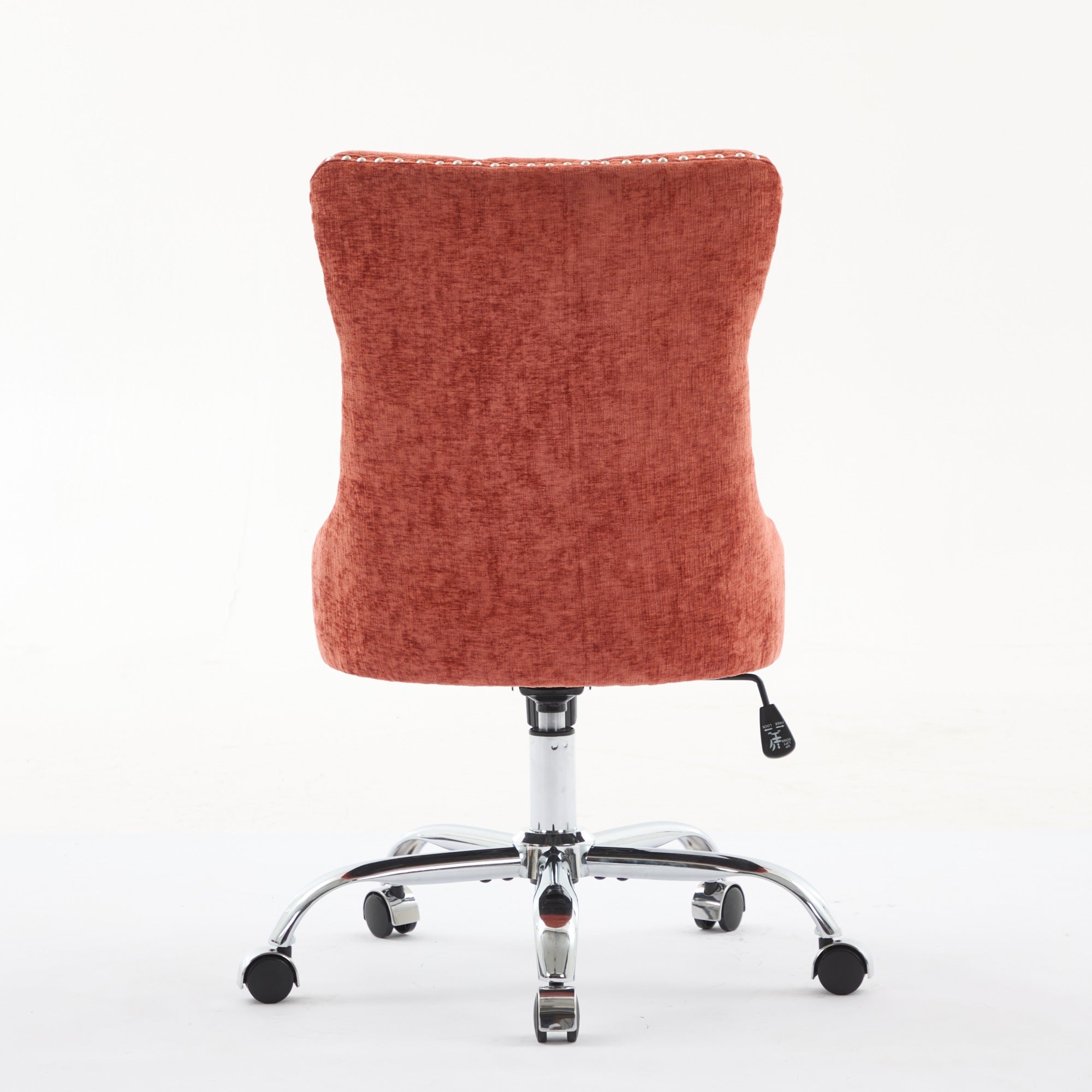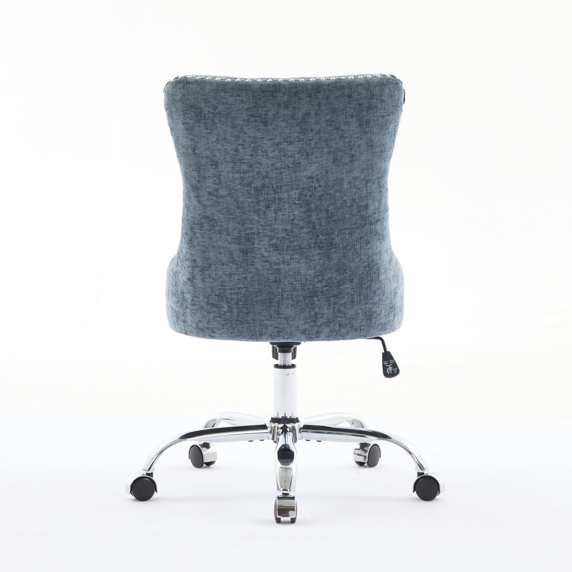 Elevate your home office or workspace with this modern chenille-upholstered swivel chair that blends comfort, durability, and refined style. Soft tufted button detailing, a plush high-rebound cushion, and a sturdy chrome base create a versatile piece that works equally well as a desk chair or occasional seating in living spaces.