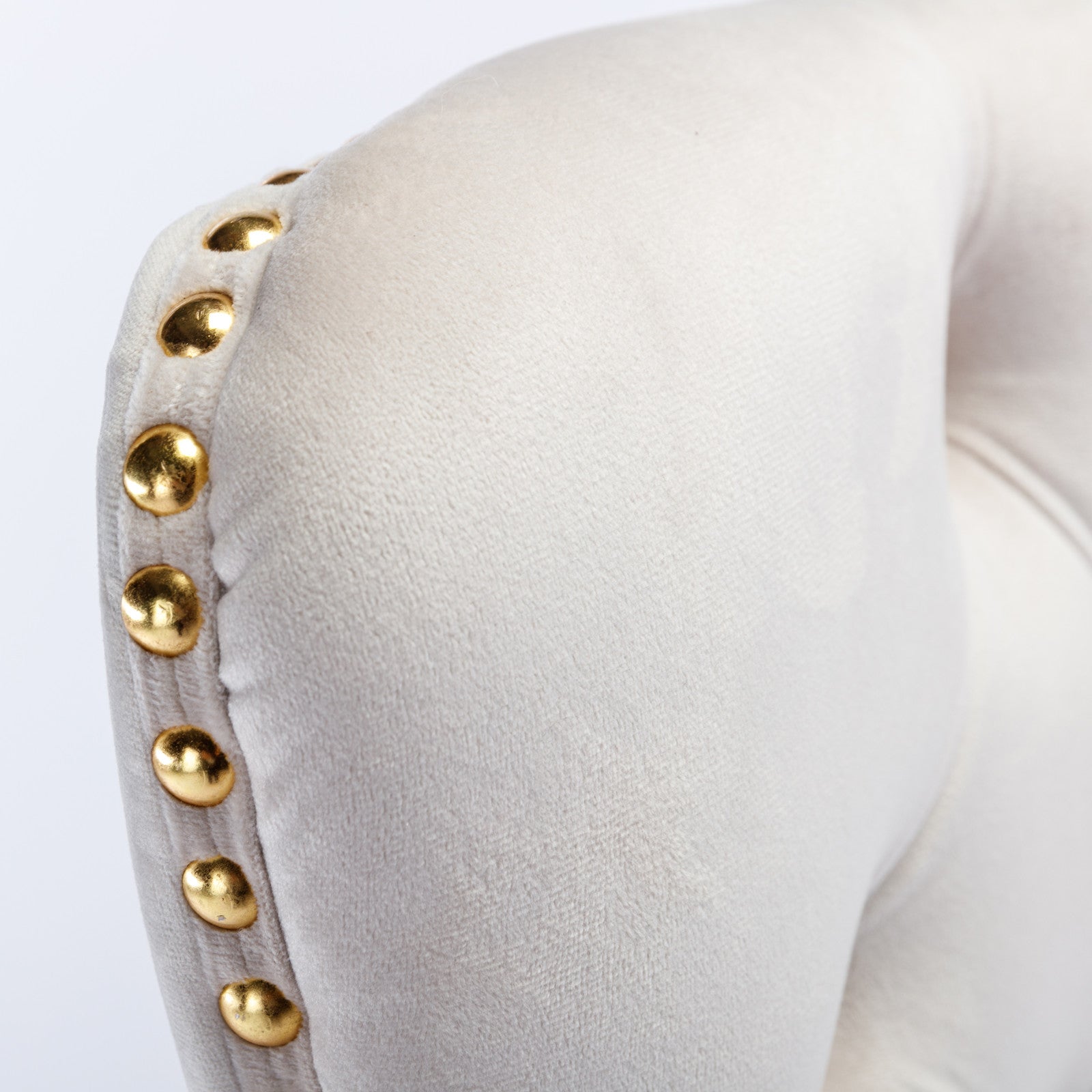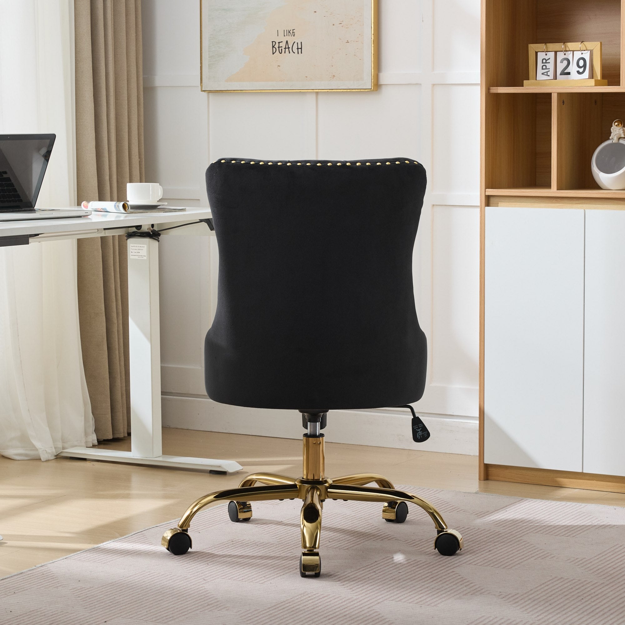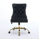 Elevate your home office or vanity area with this modern velvet upholstered swivel chair that blends classic tufted styling and contemporary metallic accents. Designed for comfort and visual impact, the chair features handcrafted detailing and a supportive triple-elastic cushion system, making it ideal for extended work or leisure sessions while adding a touch of luxury to any room.