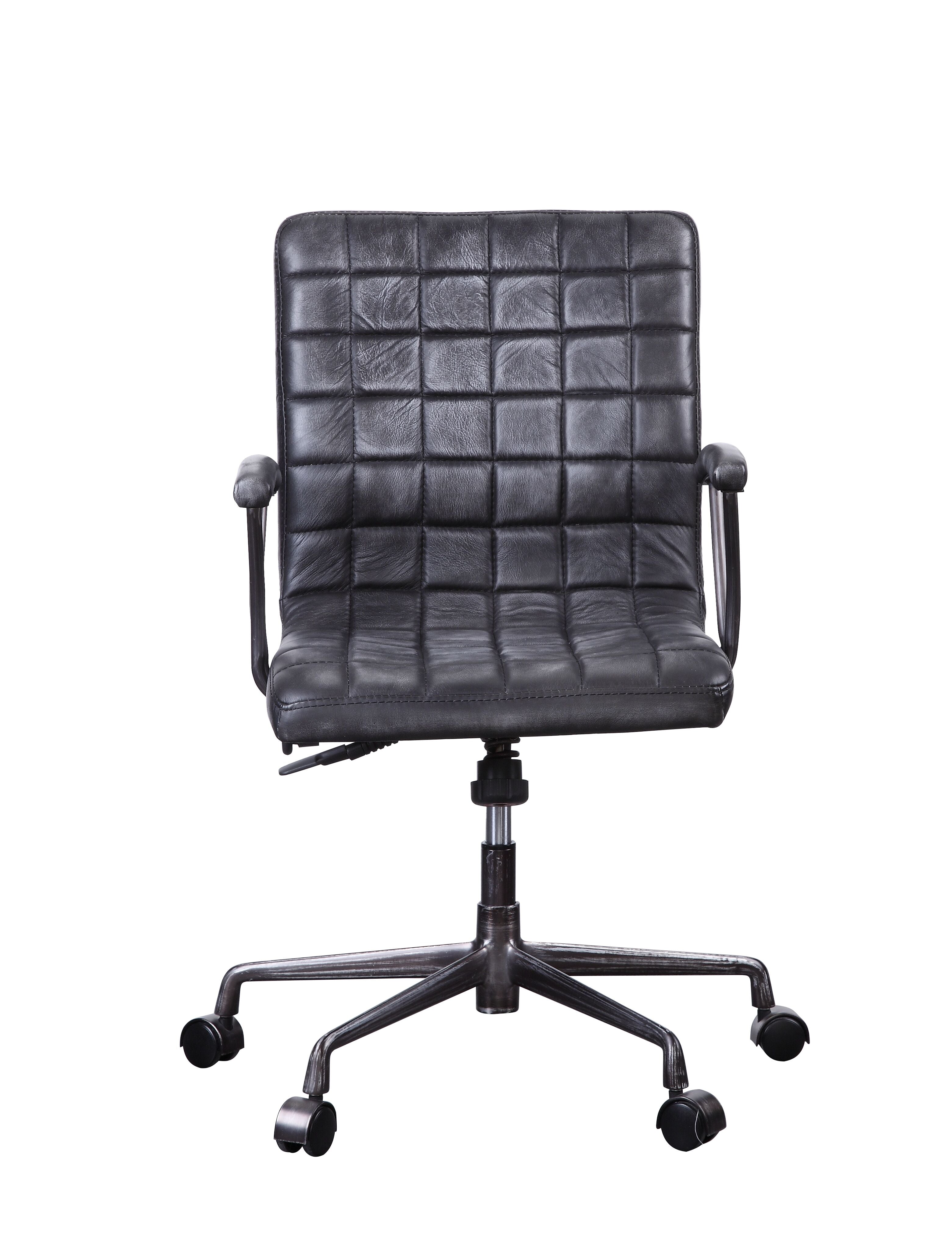 Experience executive comfort and timeless style with this vintage-inspired office chair. Crafted from premium top-grain leather and sturdy aluminum accents, it blends professional aesthetics with ergonomic support for long workdays. The chair's adjustable features, padded armrests, and smooth 360° swivel make it a versatile choice for home offices, conference rooms, or executive suites.