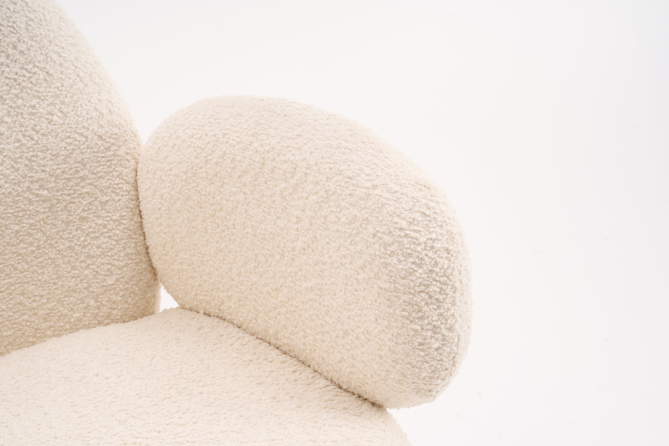 - Premium Boucle Fabric & Ergonomic Design: Crafted with soft, textured boucle fabric for a cozy seating experience. The curved backrest and armrests conform to the body's natural contours, providing optimal lumbar support and reducing fatigue during long work or study sessions.