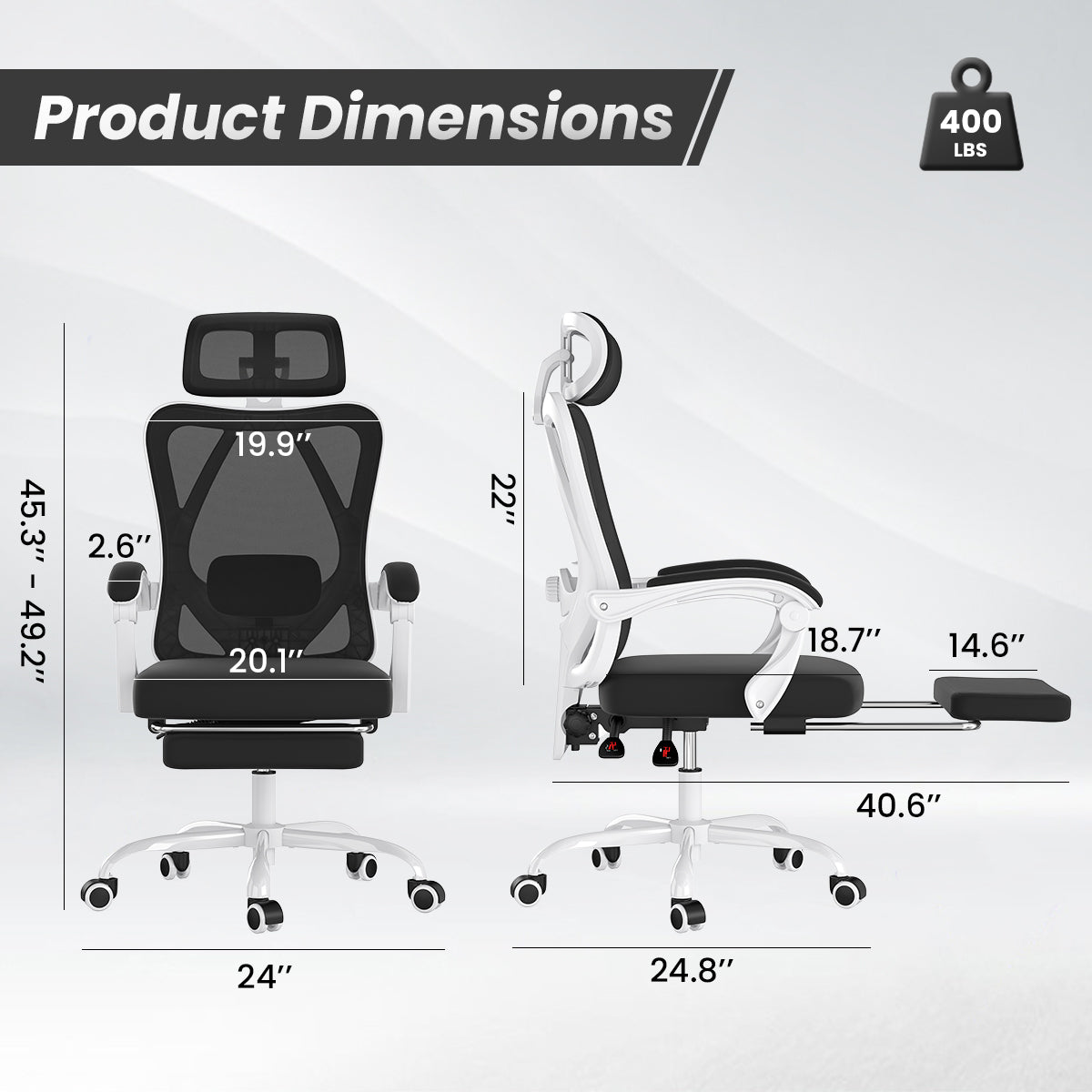 Upgrade your workspace with this modern ergonomic office chair designed for long-lasting comfort, breathability, and support. Ideal for home offices, study rooms, bedrooms, or professional workspaces, it combines a ventilated mesh design with adjustable features—headrest, lumbar support, recline, and a retractable footrest—to help reduce strain and keep you comfortable throughout the day.