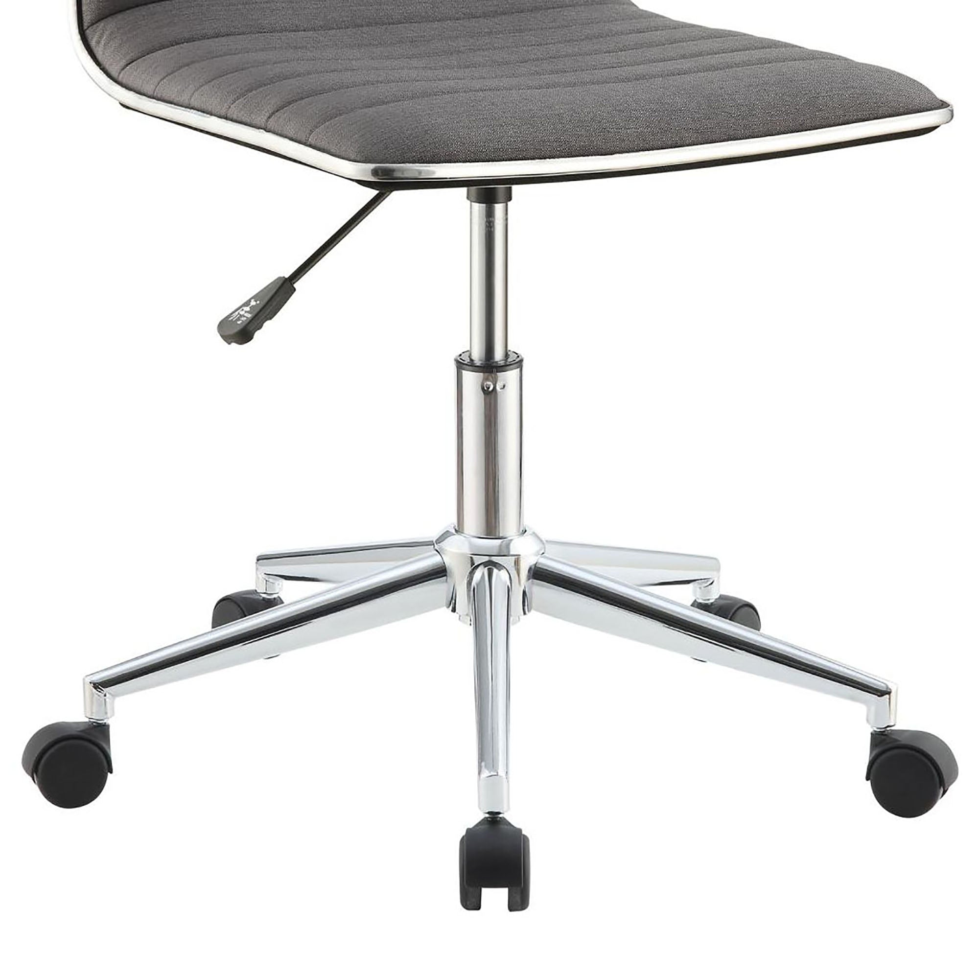 Bring modern minimalism and practical comfort to your workspace with this sleek armless office chair. Its clean square profile, horizontal stitched detailing, and chrome base create a contemporary look that fits home offices, conference rooms, or collaborative workspaces. Built for everyday use, it combines easy adjustability and smooth mobility for seated comfort throughout the day.