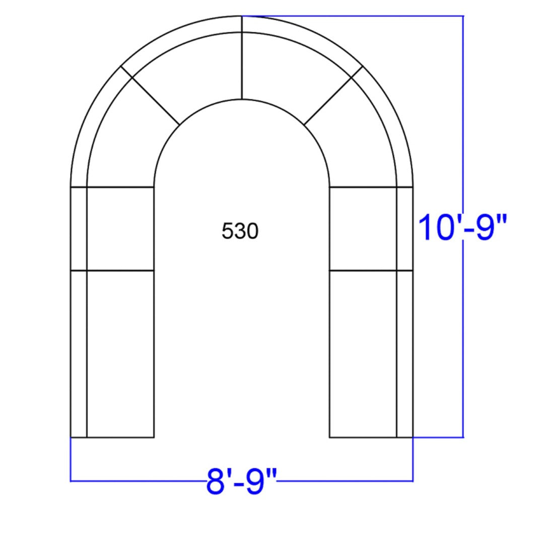 - Product Dimensions (prominent): Overall configuration: 105"W x 25.25"–129"D x 27"H. Individual pieces — Chair (2): 25.5"W x 25.25"D x 27"H; Seat: 25.5"W x 20"D x 16"H; Back: 25.5"W x 9"H. Concave Chair (4): 41.5"W x 25.25"D x 27"H.