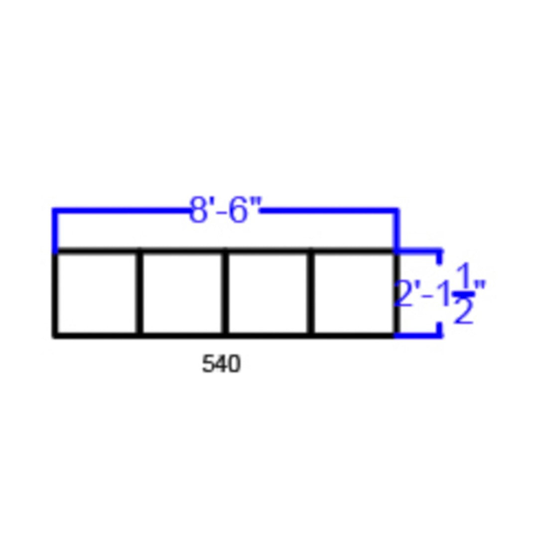 - Key Dimensions: Overall configuration: 102"W x 25.25"–25.5"D x 16"H; Ottoman (4): 25.5"W x 25.25"D x 16"H — (dimensions provided for planning and space layout)